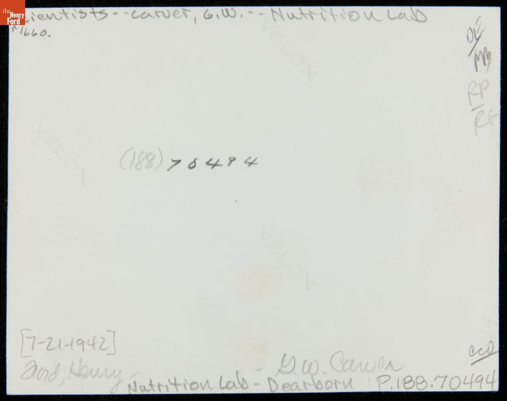 George Washington Carver and Henry Ford at the Carver Nutrition Laboratory, Dearborn, Michigan, 1942