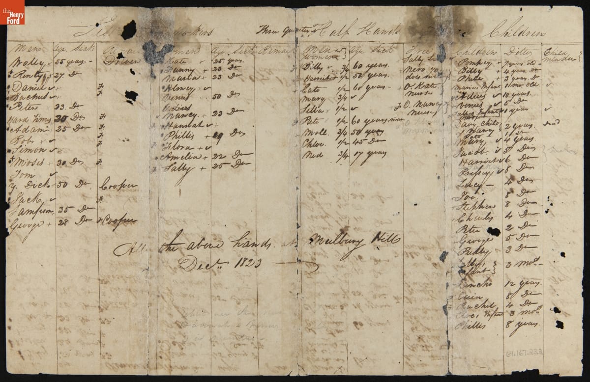 Inventory of Slaves from Mulberry Hill and White Hall Plantations, Bryan County, Georgia, December 1823