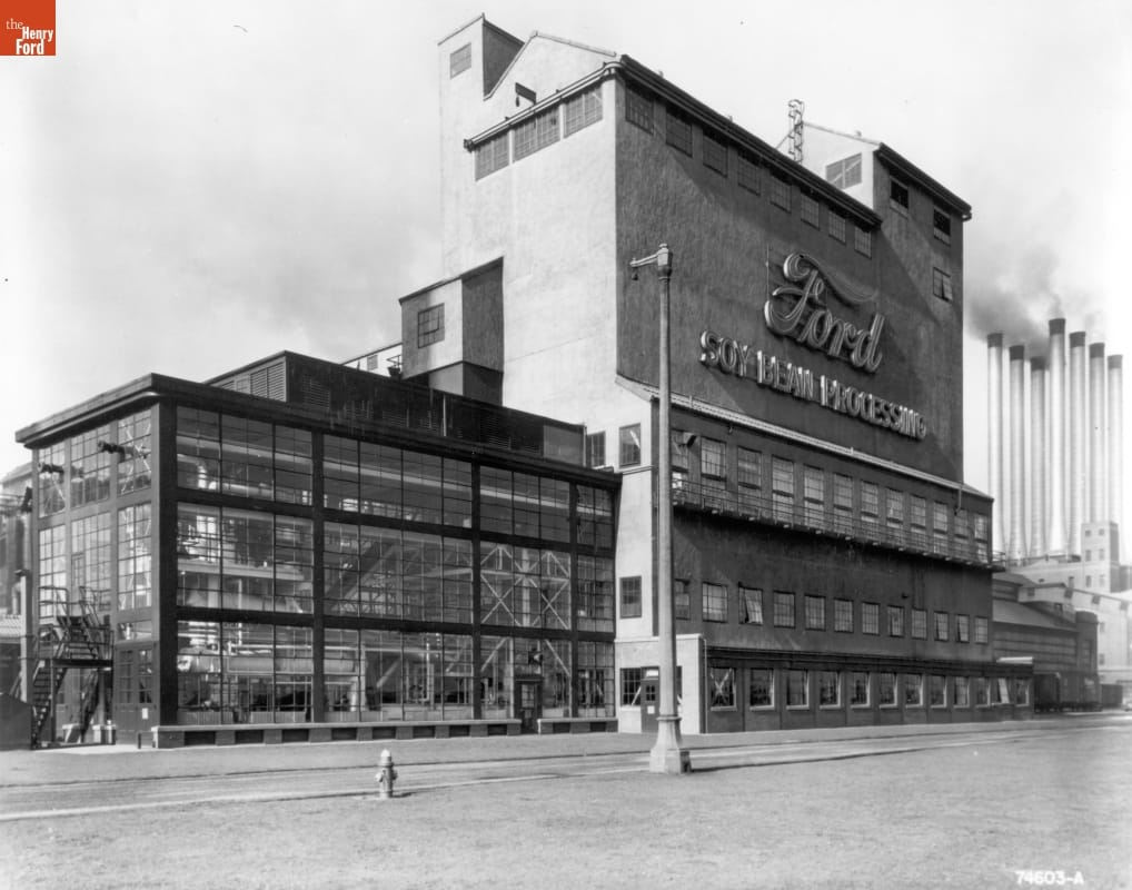 Starting in 1931, Henry Ford invested much money and research into soybeans. Ford viewed the crop as a bridge between agriculture and industry, and he used soybean oil and soybean-based plastics in Ford Motor Company vehicles. At the Rouge's processing building, soybeans were crushed and mixed with hexane -- a chemical that extracted the soybean oil.