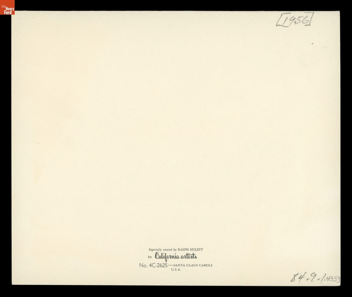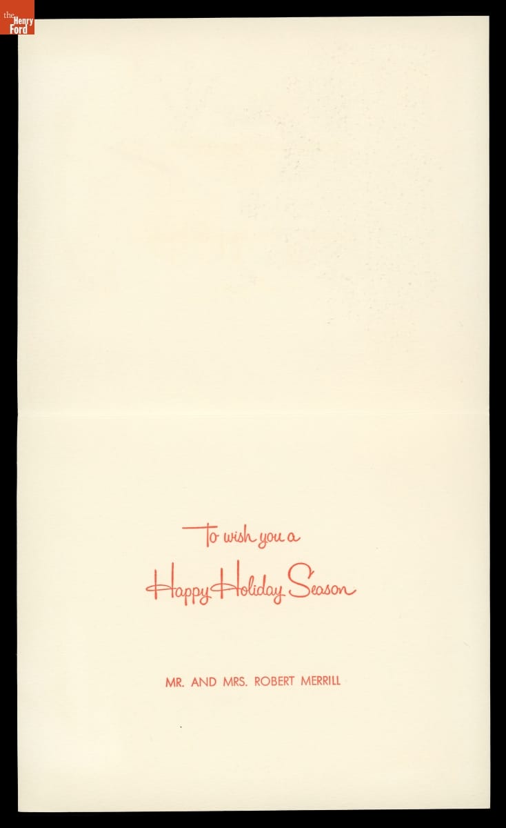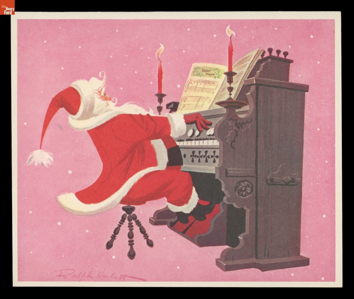 Artist Ralph Hulett (1915-1974) attended Chouinard Art Institute in Los Angeles. In 1937, while still in school, the young artist was hired by Walt Disney. Hulett would work for Disney for the rest of his career while continuing to exhibit his artwork in museums and galleries. Hulett also created commercial illustrations for various publications, including Ford Times, and in 1949 he began designing Christmas cards.