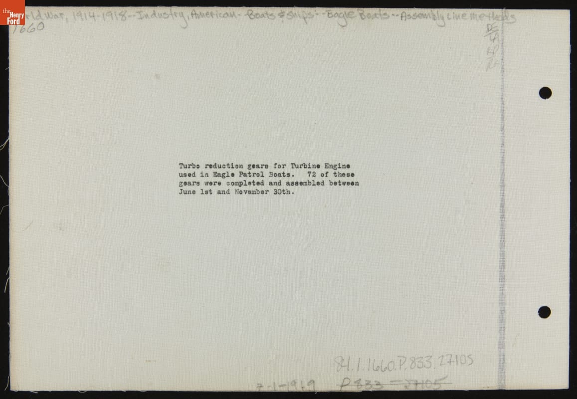 Turbo Reduction Gears for Eagle Boat Turbine Engine, July 1919