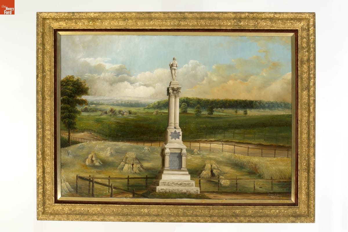 Jessie Zinn created this painting of the monument soon after. Did a proud Michigan Brigade veteran ask the 26-year-old Gettysburg artist to paint it? Did Michigan veterans commission the artwork to hang in their local Grand Army of the Republic (G.A.R) Hall? We don't yet know.