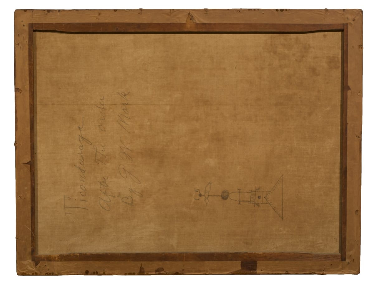 George Washington Mark was a successful house, sign, and furniture painter in Greenfield, Massachusetts, in the early 1800s. Sometime in the 1830s and 40s, he tried his hand at more artistic endeavors creating paintings of local interest -- generally landscapes and historic subjects. Around 1845, Mark painted this work depicting the ruins of New York's historic Fort Ticonderoga.