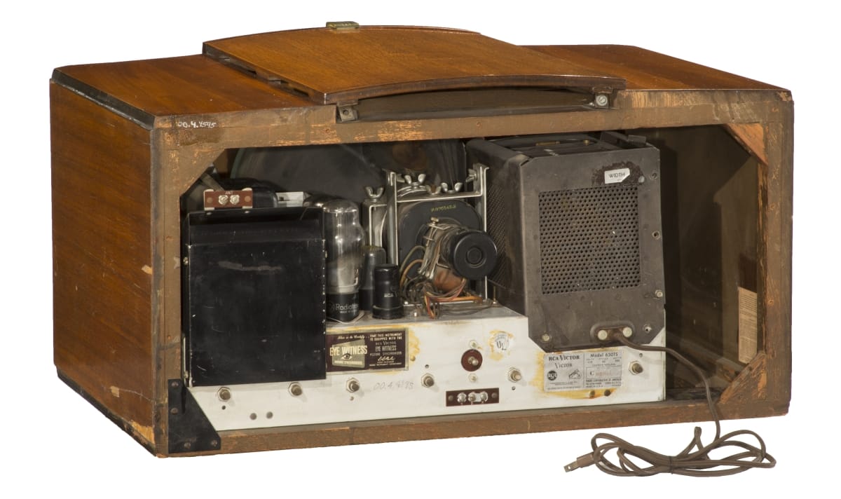 The RCA 630TS is a tabletop television introduced into the post-WWII market. A popular, mass-produced model, it played a role in the rising standardization of television production missing in the early phases of the technology. This model could be purchased in several variations: tabletop (pictured here), chassis-only (installed in custom cabinets), and kit form (assembled from scratch by the customer).