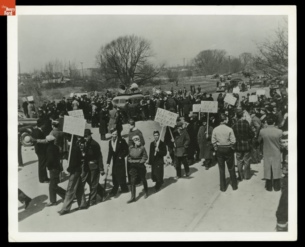 The workers who manufactured and bought cars organized into labor unions to better their working conditions. The United Auto Workers, founded in 1935, quickly organized the auto industry. In this photograph, workers picket Ford Motor Company -- the last major automaker to unionize -- during a 1941 strike.