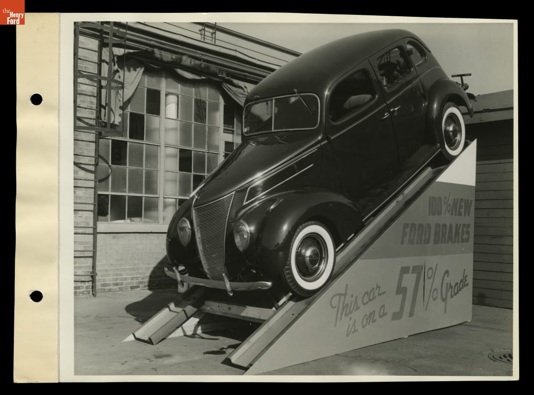 1937 Ford V-8 Car on Ramp to Demonstrate its Braking Efficiency