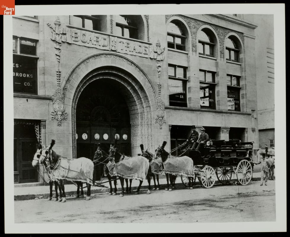 Six-Horse Team and Carriage outside Board of Trade Building, Duluth, Minnesota, circa 1900