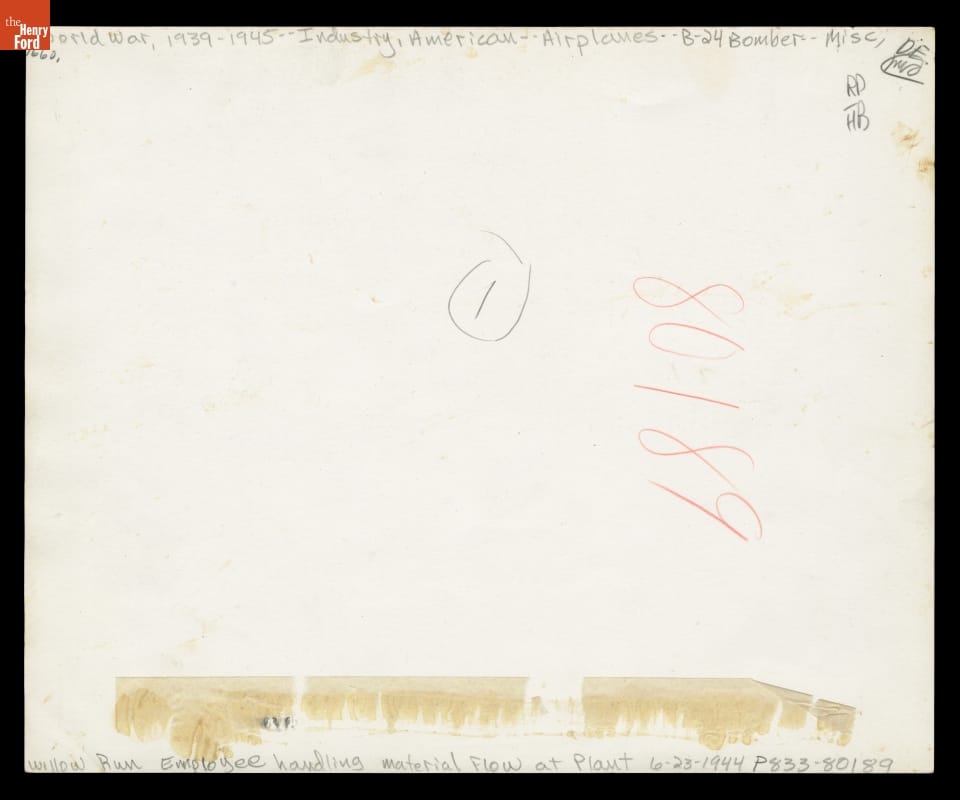 Employee Handling the Material Flow for the B-24 Bomber, Willow Run Bomber Plant, 1944