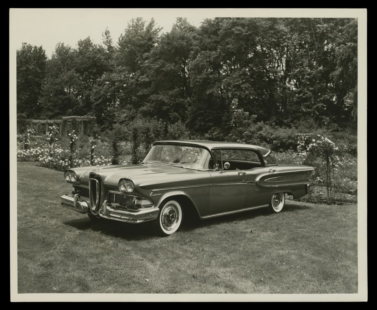 Ford Motor Company introduced a new mid-priced brand, to better compete with General Motors and Chrysler, for 1958. Edsel came in four separate series. The top-of-the-line Citation featured special molding and medallions, and it was available with two- or three-tone paint. The four-door hardtop sedan started at $3,580. Edsel was not a success. Ford discontinued the brand after the 1960 model year.