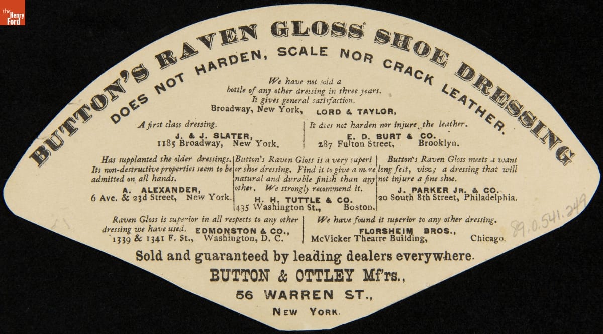 Button's Raven Gloss Shoe Dressing Trade Card, 1880-1890
