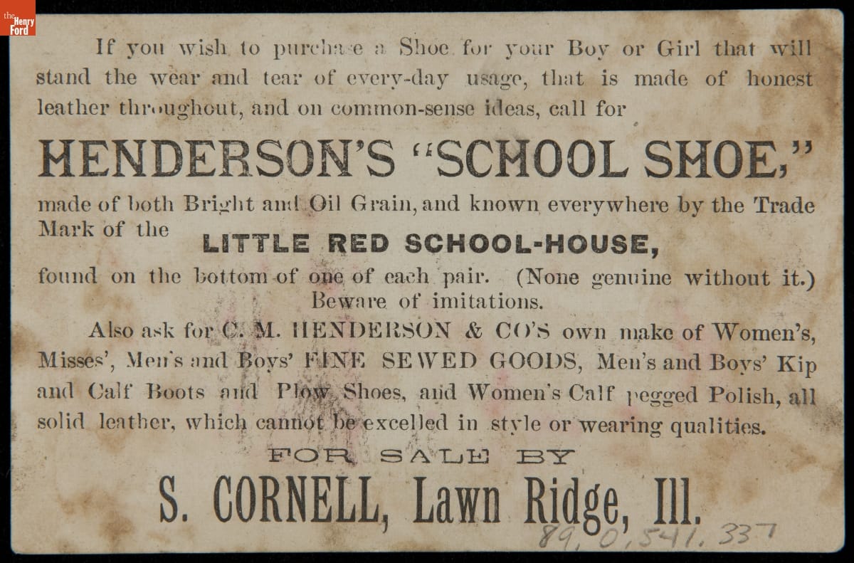 Trade Card for "School Shoes," C. M. Henderson & Company, circa 1885