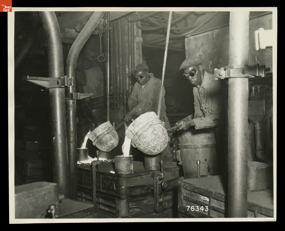 Workers Pouring Molten Metal in the Foundry at the Ford Motor Company Rouge Plant, November 10, 1941