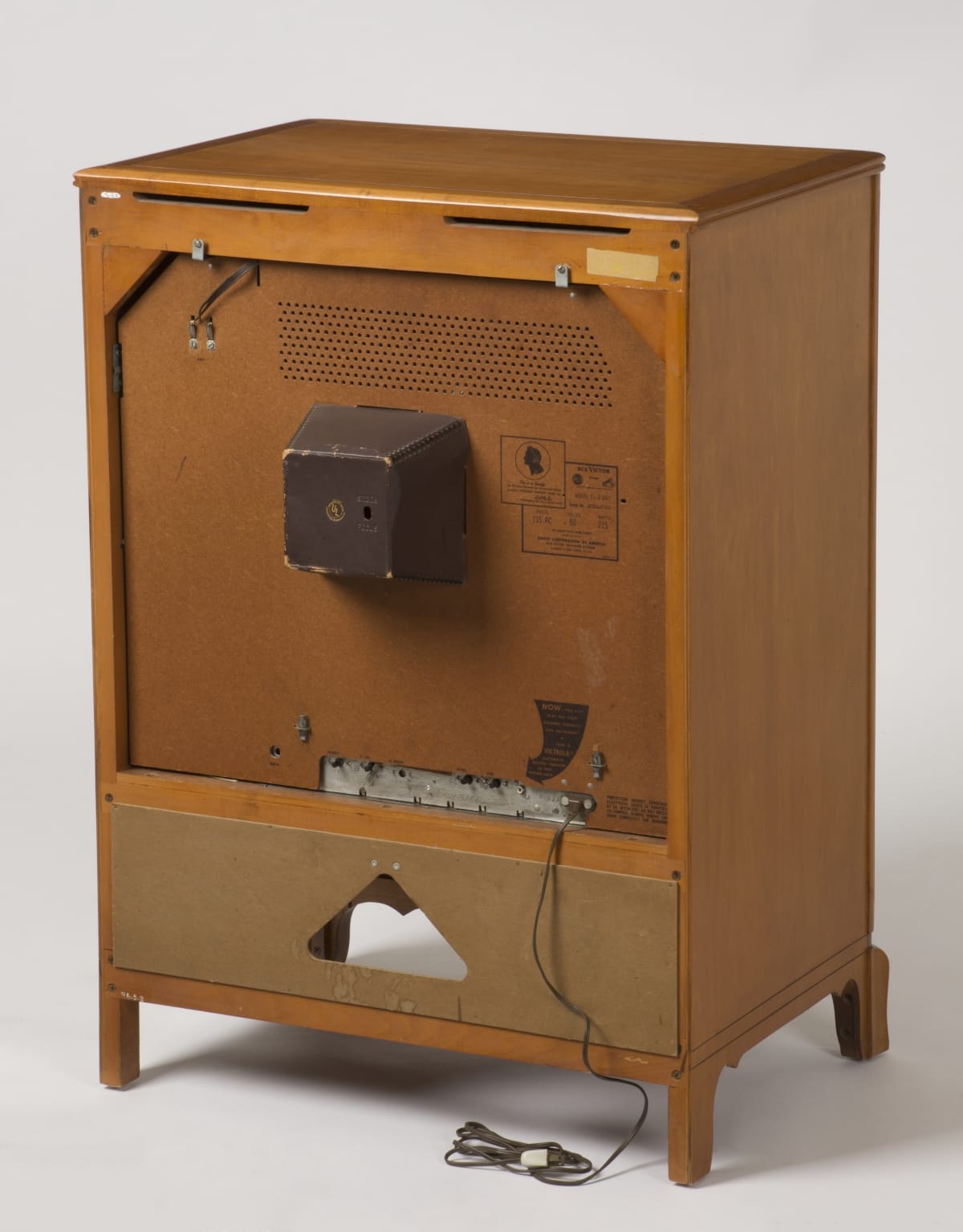 Stamped on back panel: RCA VICTOR/ VICTOR/.../ MODEL 21-0-647/ SERIAL NO./ MARKED ON BACK/ OF TELEVISION CHASSIS/.../ MADE IN U.S.A./ RADIO CORPORATION OF AMERICA/ RCA VICTOR TELEVISION DIVISION/ CAMDEN 2, NEW JERSEY, U.S.A.