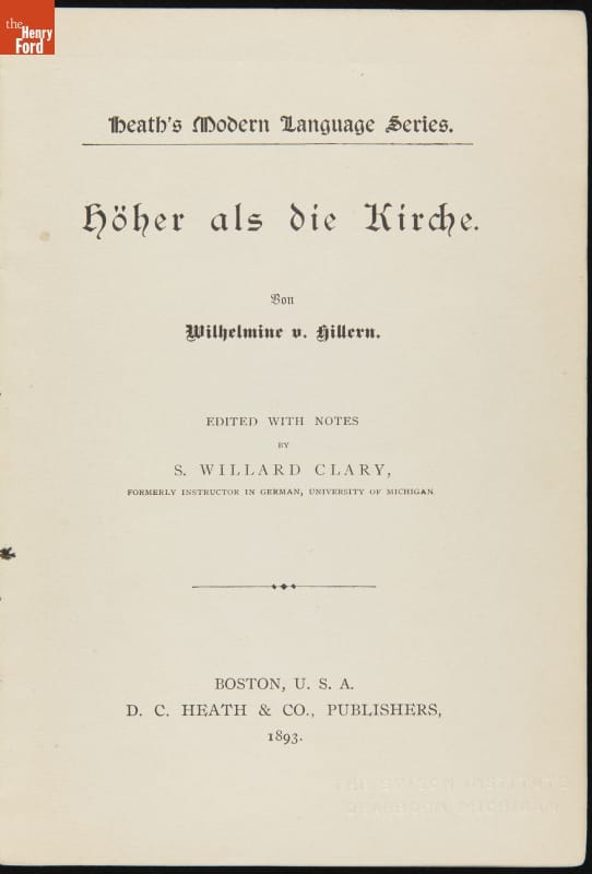 HILLERN'S / Hoher als die Kirche. / CLARY / D. C. HEATH & CO. / BOSTON NEW YORK CHICAGO/ LONDON