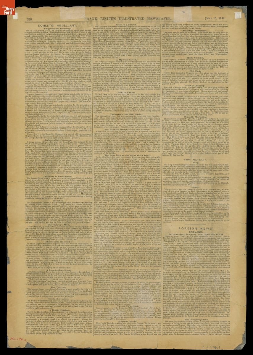 Frank Leslie's scathing articles exposed New York City's "swill milk" scandal in 1858. Whiskey distillers had been keeping dairy cows in cramped sheds and feeding them leftover mash, sickening them and tainting their milk. In turn, the milk--masked with other ingredients and marketed as "pure" to urban consumers--poisoned thousands of infants. New York State finally issued milk regulations in 1862.