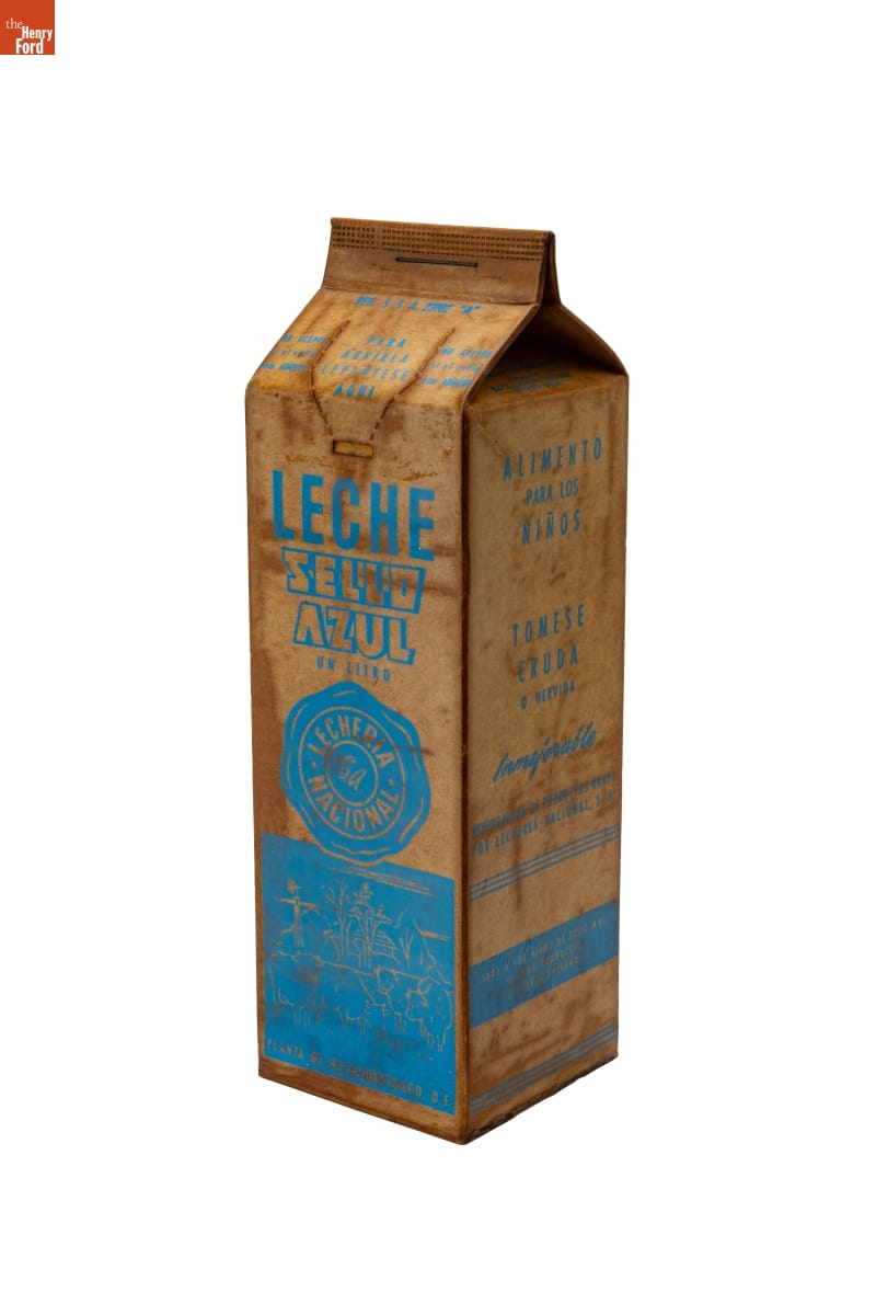 The quest for a shatter-proof milk container prompted John Van Wormer to patent a paper carton in 1915. Many processors and distributors continued to use breakable glass bottles, but, after 1937, mechanized production made the disposable, wax-coated folded cartons inexpensive and indispensable liquid containers. The iconic design, a box with a gable-end top with a pouring or drinking spout, remains the industry standard today.