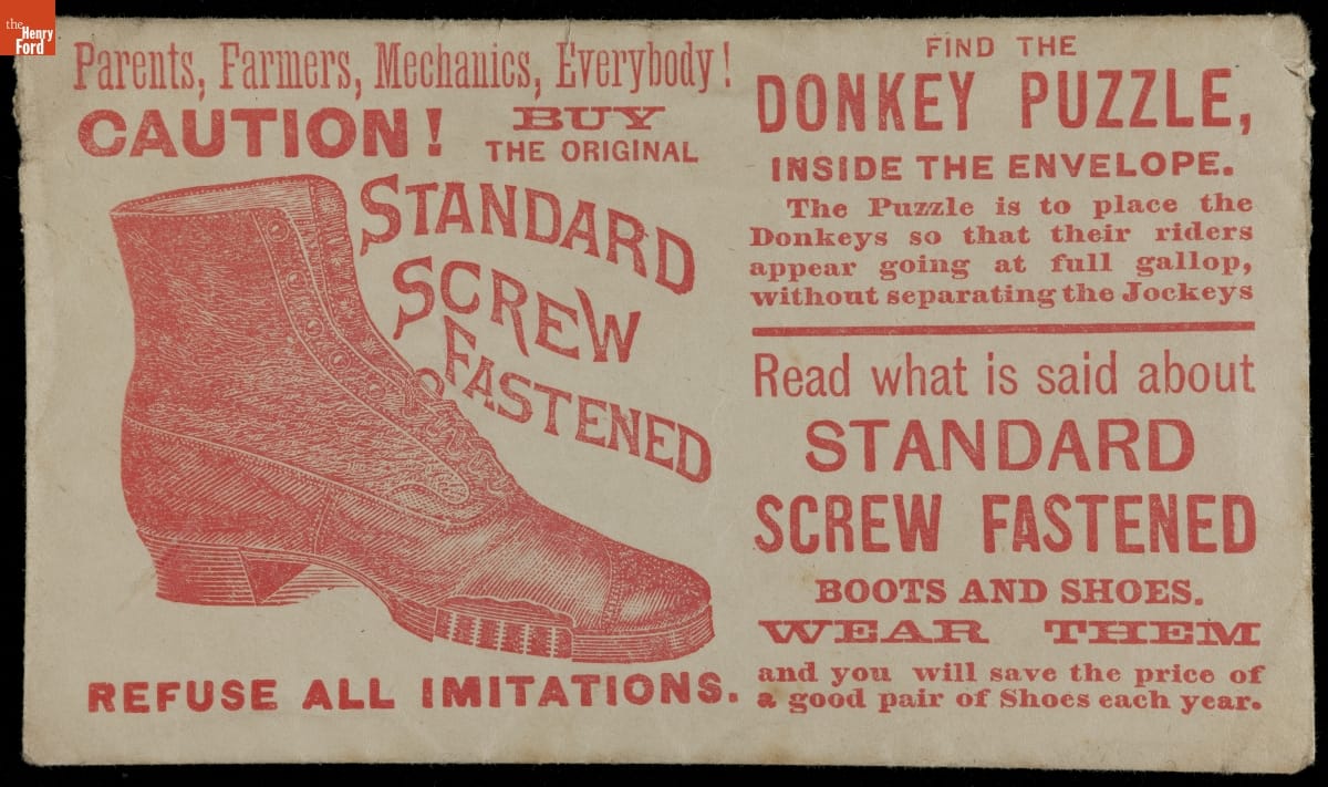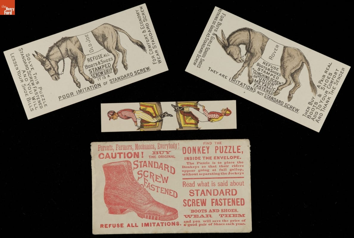 In the last third of the nineteenth century, an unprecedented variety of consumer goods flooded the American market. Some enterprising advertisers sought to distinguish their products from the competition, distributing trade cards that incorporated a puzzle or game. Americans enjoyed and often saved the popular little advertisements, which survive as historical records of consumerism in the United States.