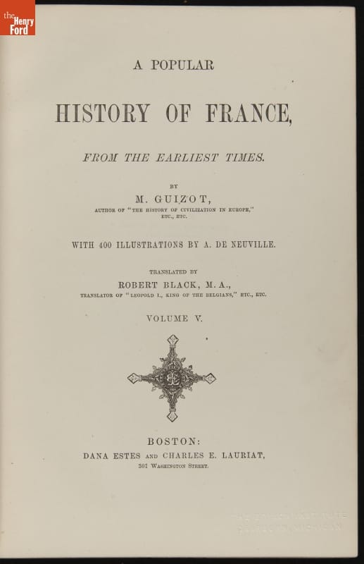 Written by Francois Guizot and published by Estes & Lauriat, Boston, Massachusetts.