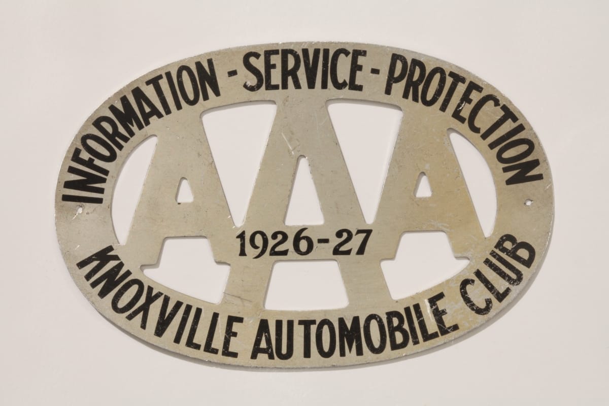 Twentieth-century motorists who belonged to automobile clubs attached badges or emblems to their vehicles. These membership badges were displayed prominently on radiators, license plates, bumpers, or elsewhere on the car. The badges helped identify members and promoted the organization. The Knoxville Automobile Club, a local AAA affiliate, issued this badge in 1926. The organization offered "Information - Service - Protection."