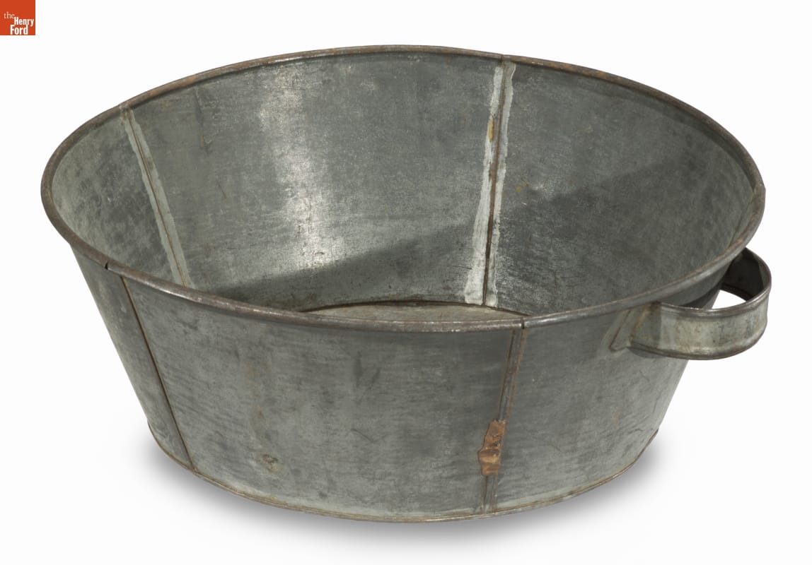 Tin-plated iron, commonly called "tin," was the dominant material for utilitarian items in 19th-century America. It was lightweight, inexpensive, easy to clean, non-toxic, and durable. Tinware also resisted corrosion and had a pleasing silvery appearance that could be enhanced through decoration. Middle-class Americans happily purchased tinware in place of goods made from earlier materials, like wood or pottery.