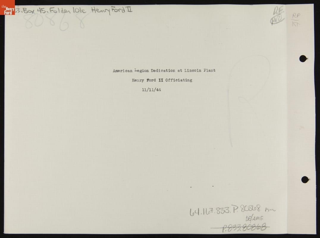 Henry Ford II at the American Legion Dedication at the Lincoln Plant, November 11, 1944