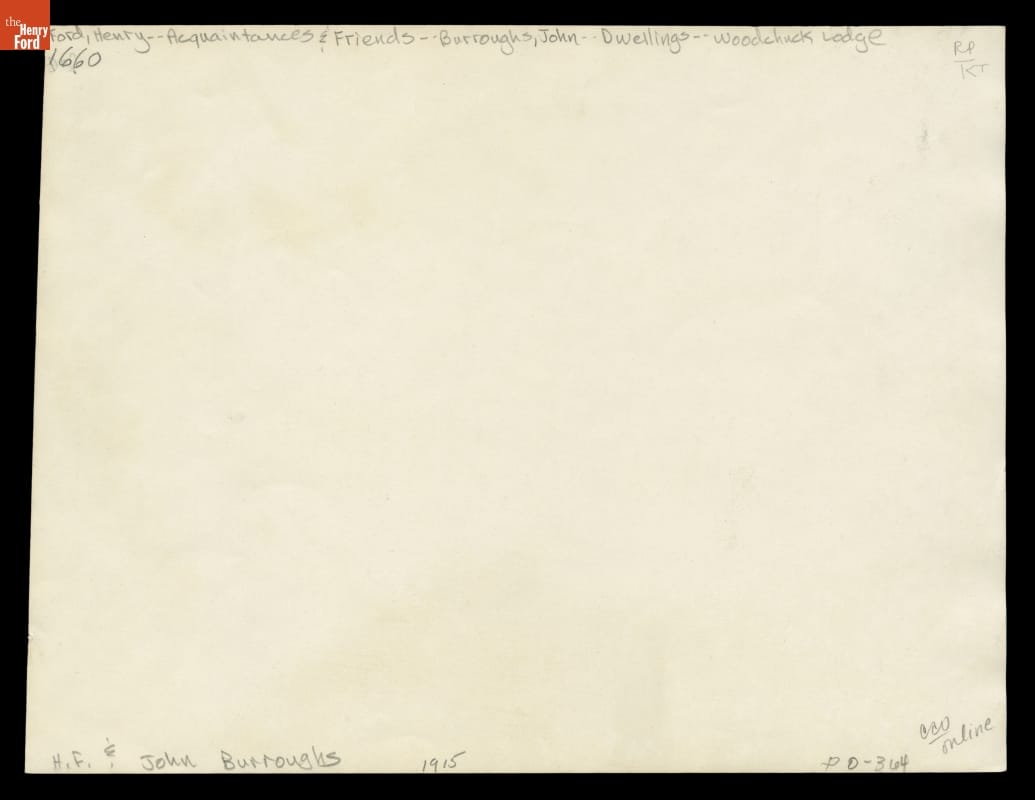 Black ink writing on print back reads: 1915 Woodchuck Lodge H. Ford -- J. Burroughs.