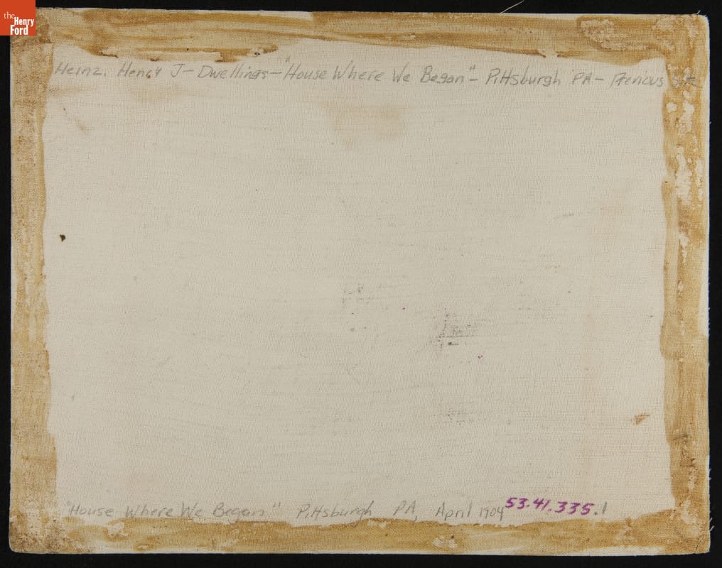 In 1869, H.J. Heinz started his processed food business at his parents' home in Sharpsburg, Pennsylvania. Though operations soon outgrew the house, it remained an important part of company history. In 1904, Heinz moved the house 5 miles down the Allegheny River to his Pittsburgh factory, where it served as a company museum for visiting tourists.