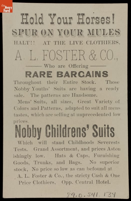 Trade Card for Clothing, A. L. Foster & Co., 1880-1900