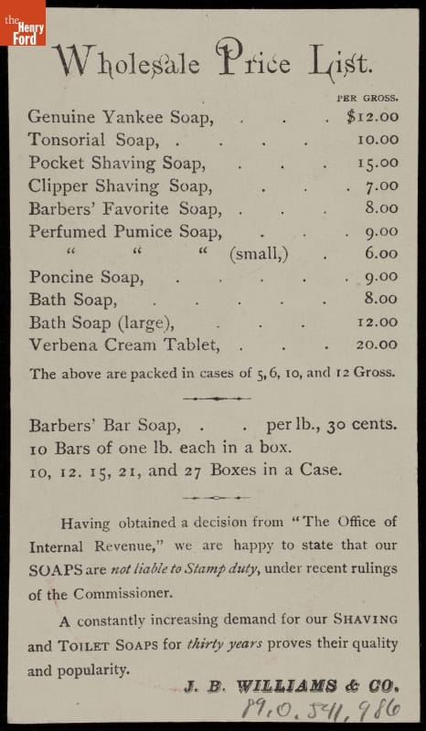 Trade Card for Shaving and Toilet Soaps, J. B. Williams Company, 1875-1880