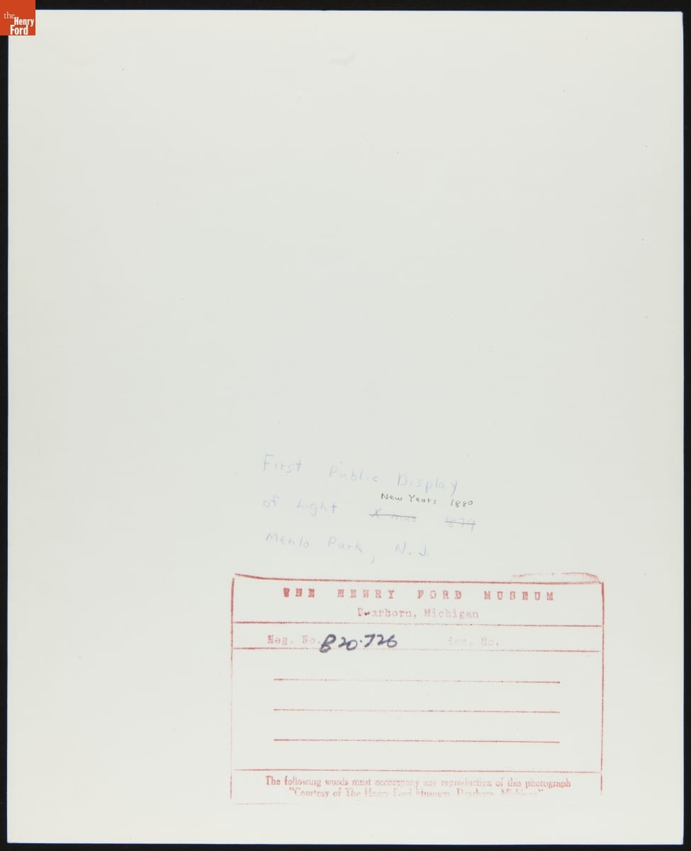 THF236642 / "First Public Demonstration of Incandescent Lighting by Thomas A. Edison, Menlo Park, New Jersey, 1879"