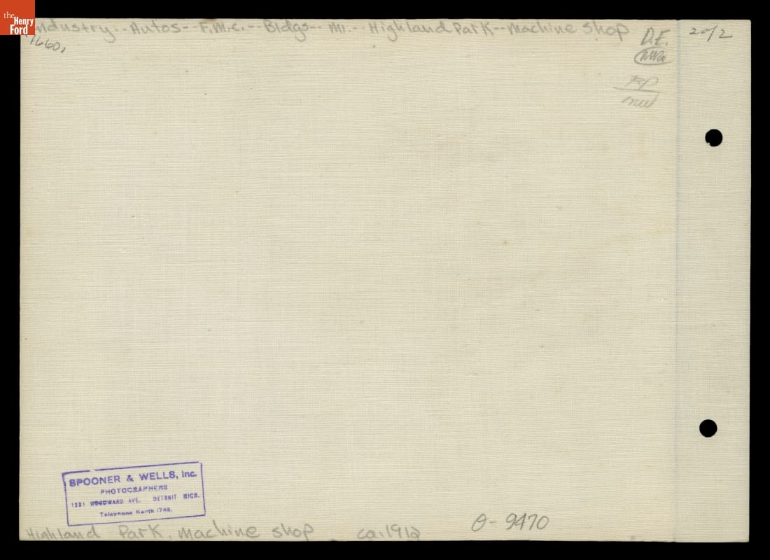 Machine Shop at the Ford Motor Company Highland Park Plant, circa 1913