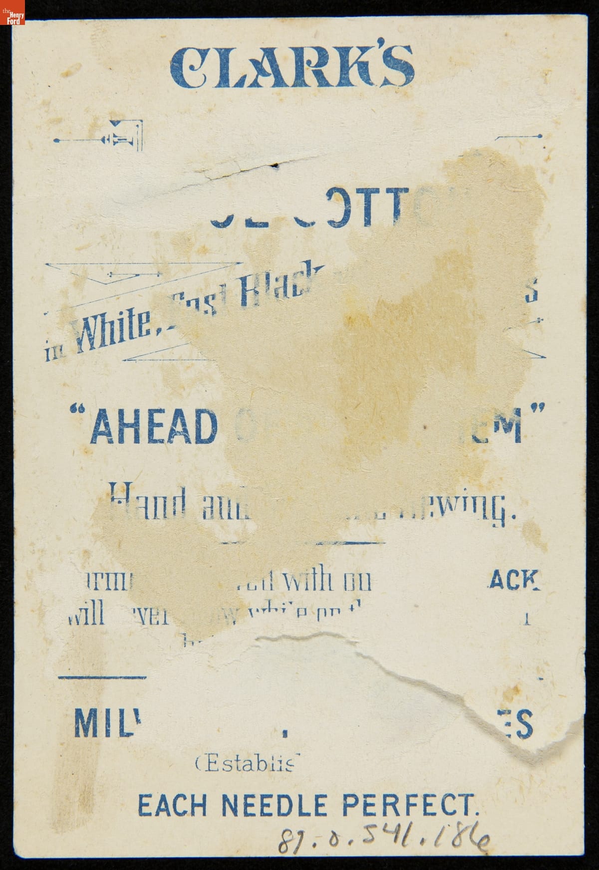 Trade Card for Clark's Spool Cotton, Clark's O.N.T., 1880-1890