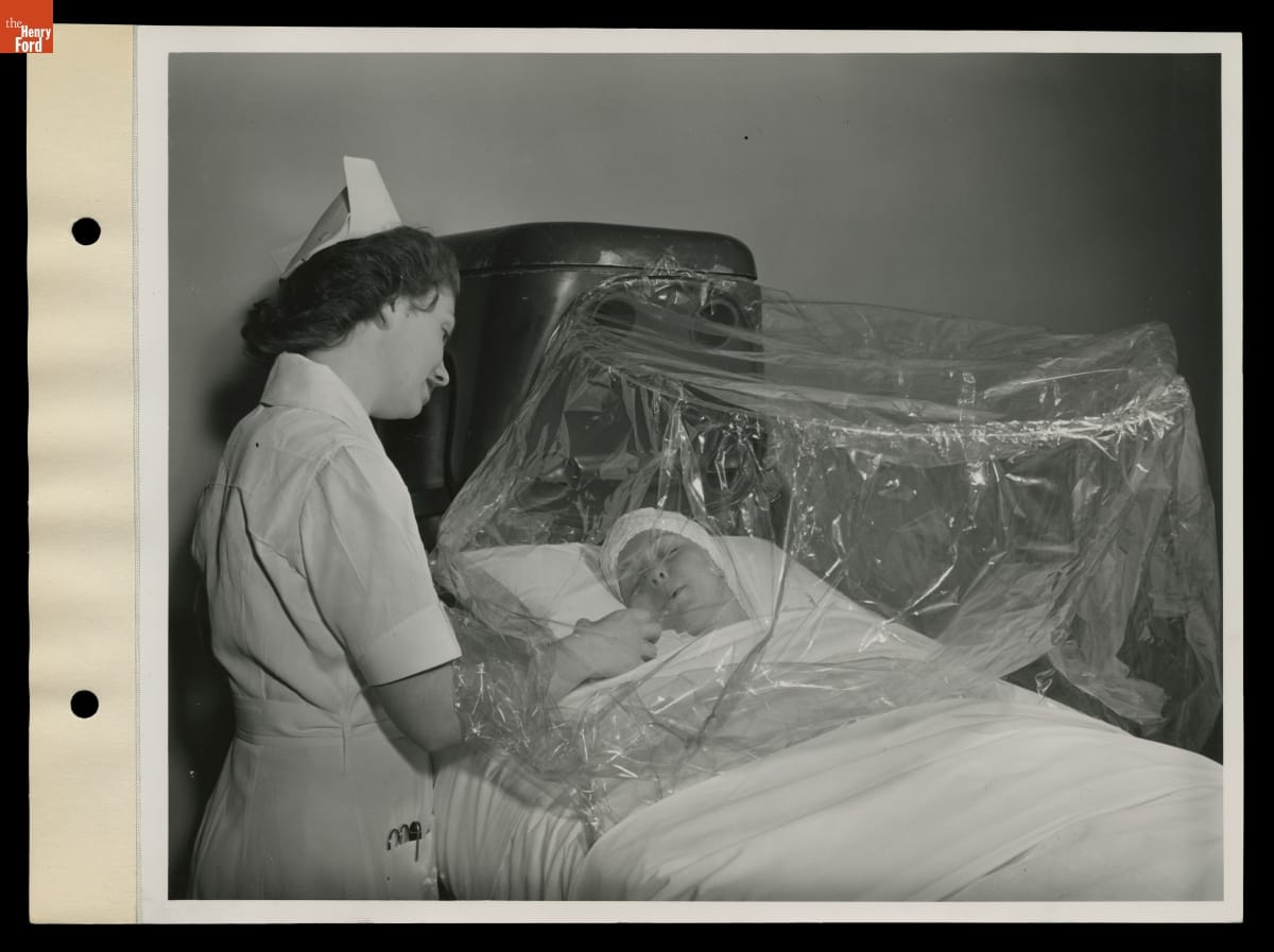 Nurse Attending Patient in Oxygen Tent at Henry Ford Hospital, Detroit, Michigan, June 1946