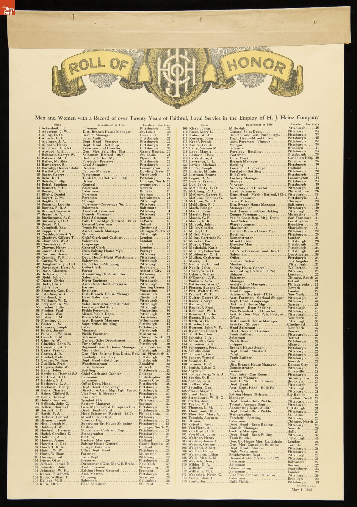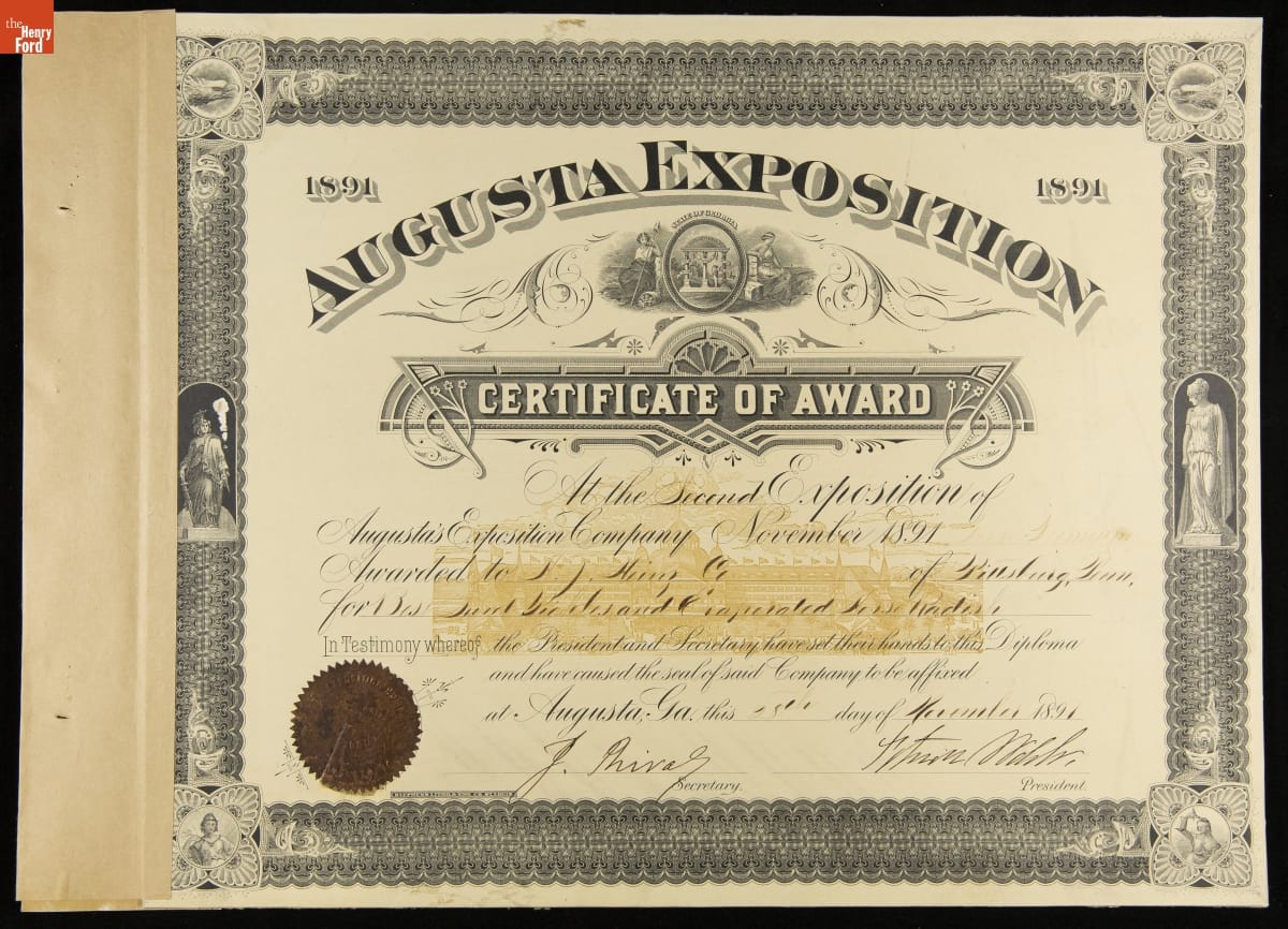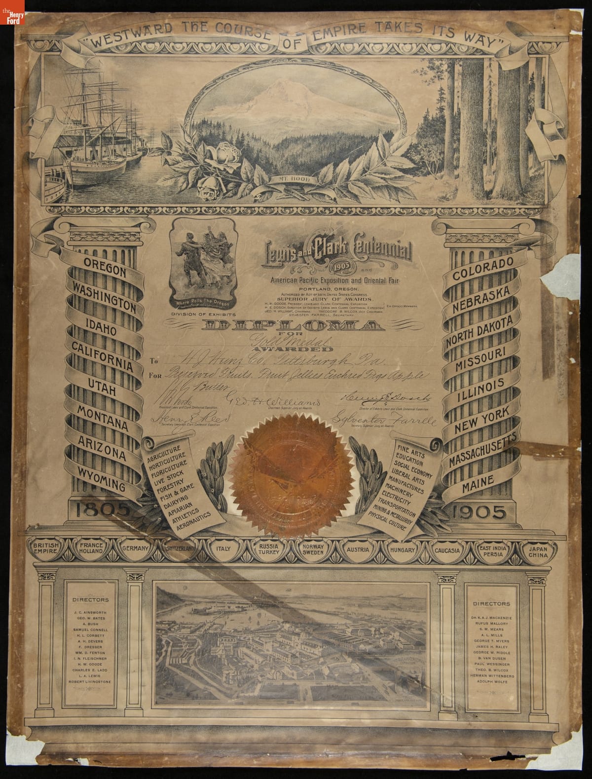 Company photograph albums are often reminders of the company's history, significant moments in time, and the employees who worked there. This album, compiled by the H.J. Heinz Company, includes certificates and awards given to the company at various expositions both nationally and internationally.