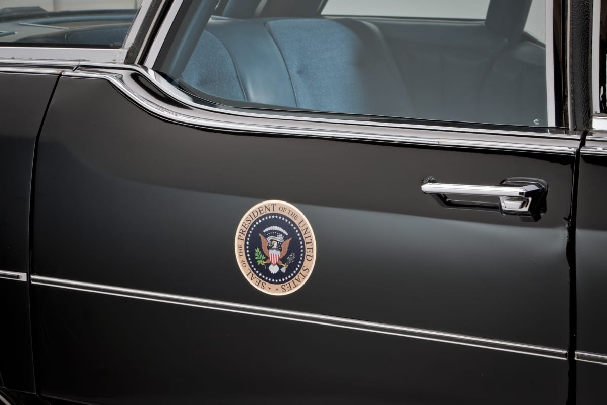 President Ronald Reagan was getting into this car when he was shot by John Hinckley on March 30, 1981. The car carried Reagan to the hospital. Presidents Nixon, Ford, Carter, and George H.W. Bush also used this car. In 1982 the front sheet metal was updated, but since a 1982 grille no longer fit properly on the 1972 body, a 1979 grille was used.