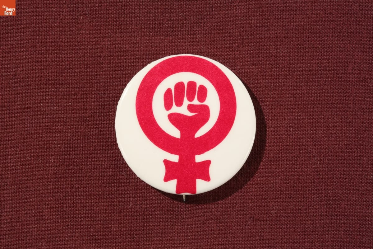The Civil Rights movement of the 1960s inspired other groups of people to demand their equal rights. American women renewed their call for equality during this period. This button depicts a raised fist -- a symbol of solidarity, defiance and revolution -- inside the biological female symbol. Together these images convey women's frustration with inequality.