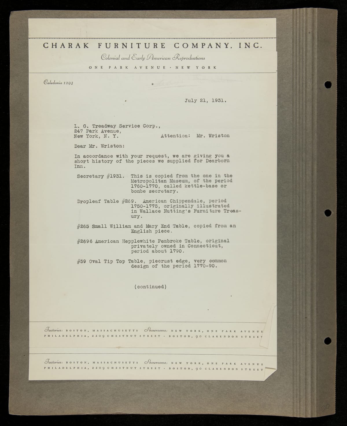 THF229292 / Scrapbook Documenting the Furnishing of Dearborn Inn, Dearborn, Michigan, 1931 / page170