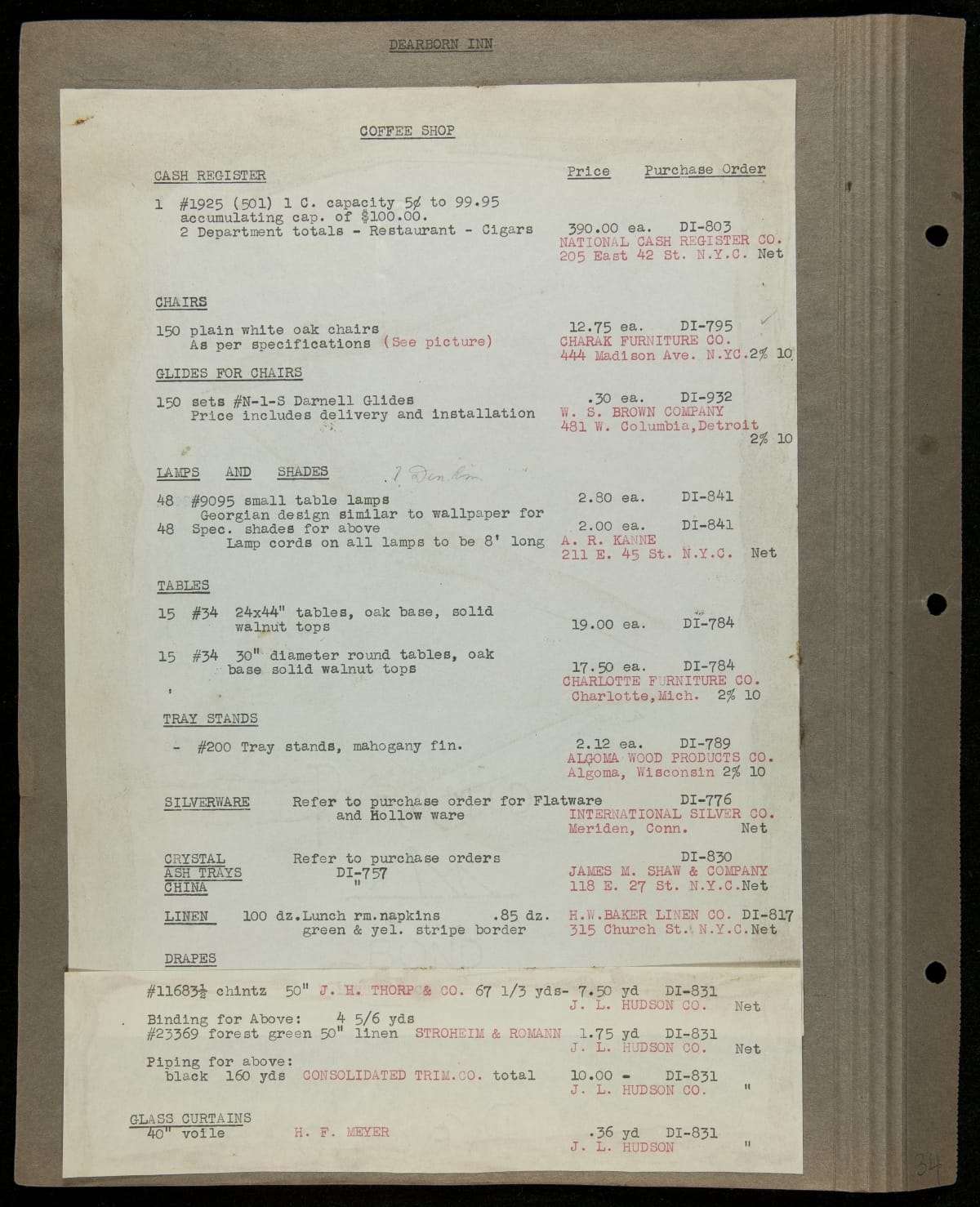 THF229259 / Scrapbook Documenting the Furnishing of Dearborn Inn, Dearborn, Michigan, 1931 / page150