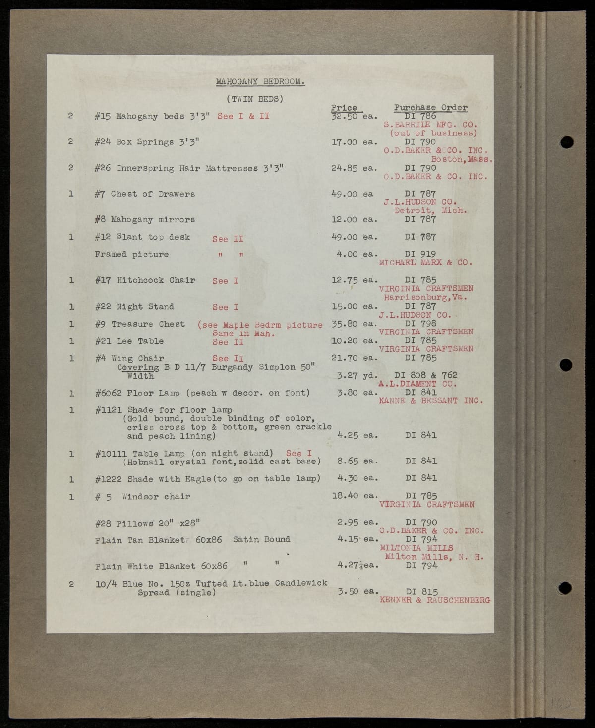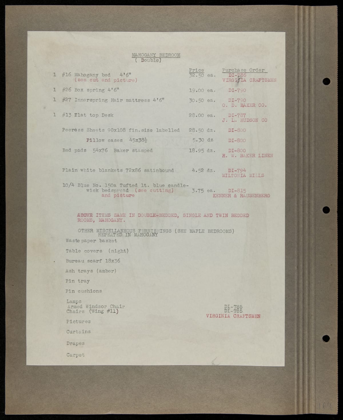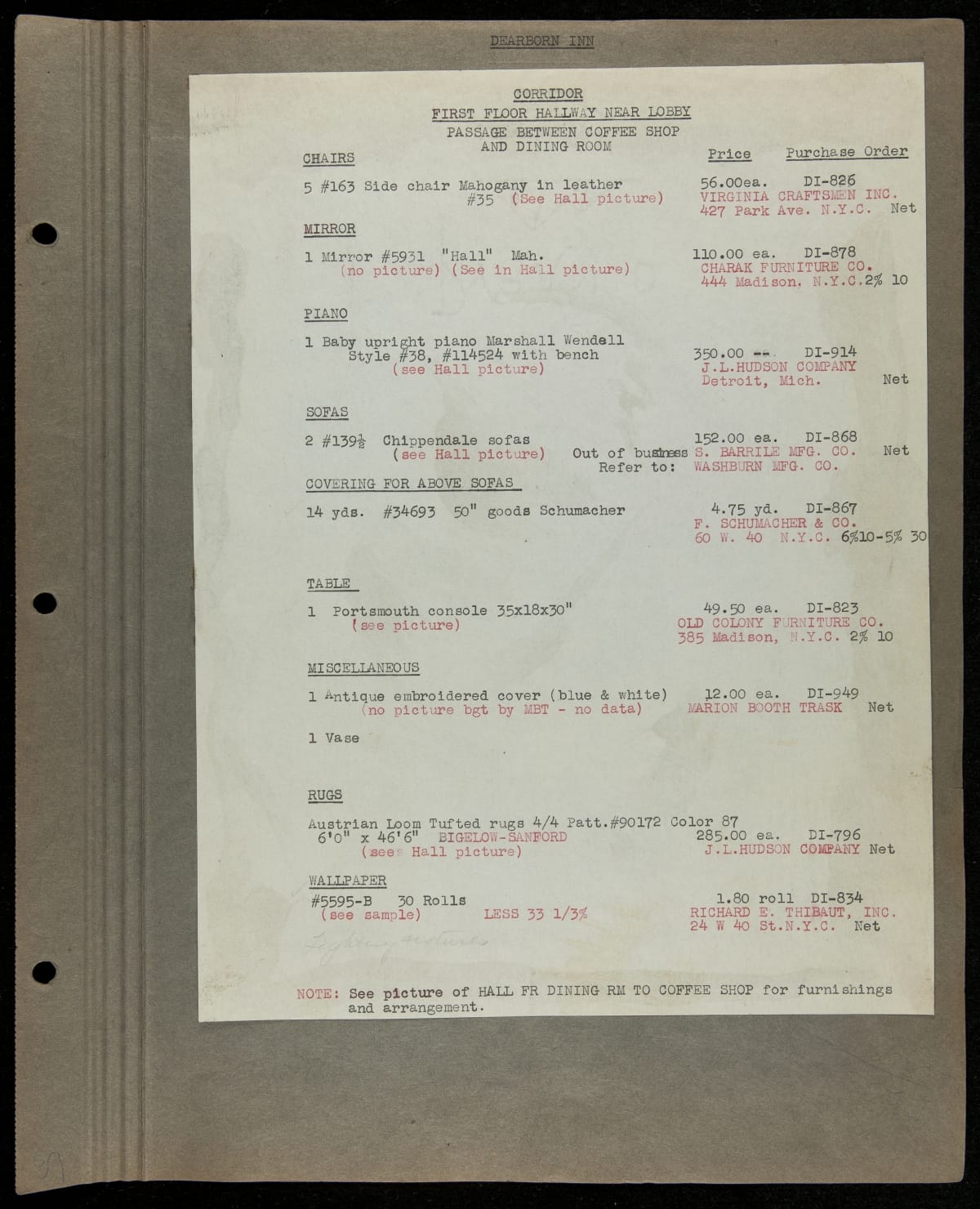 THF229244 / Scrapbook Documenting the Furnishing of Dearborn Inn, Dearborn, Michigan, 1931 / page131