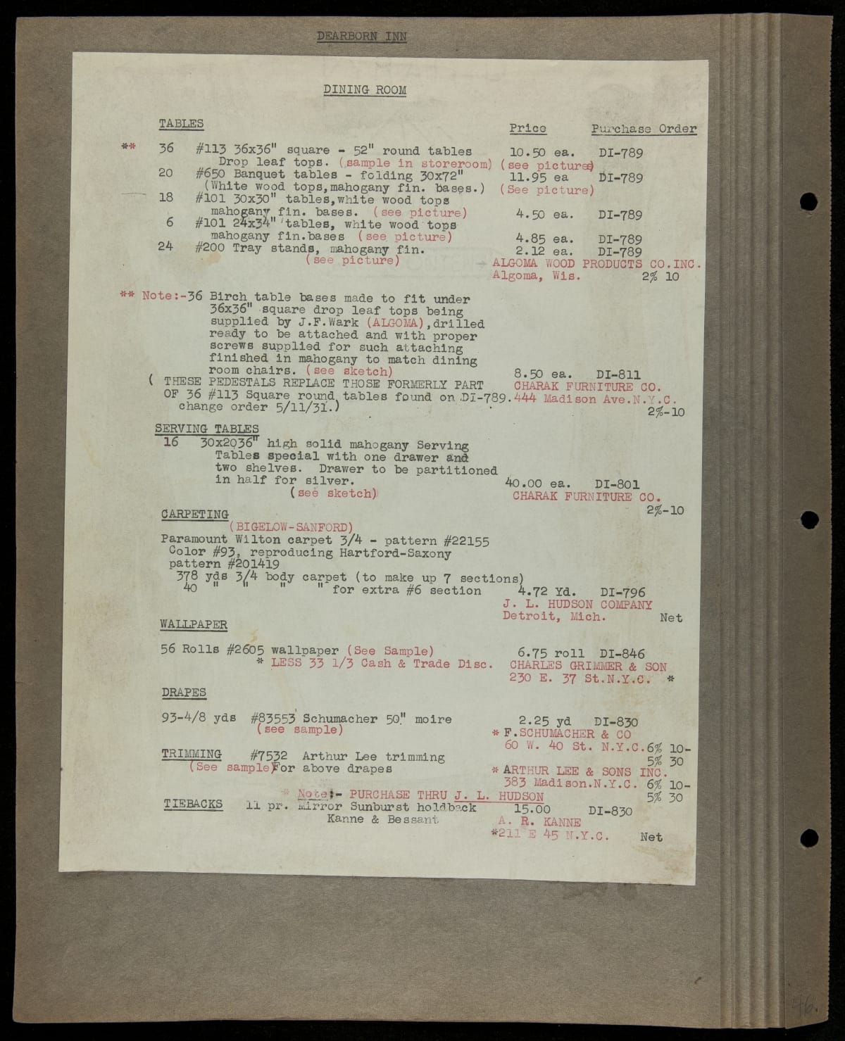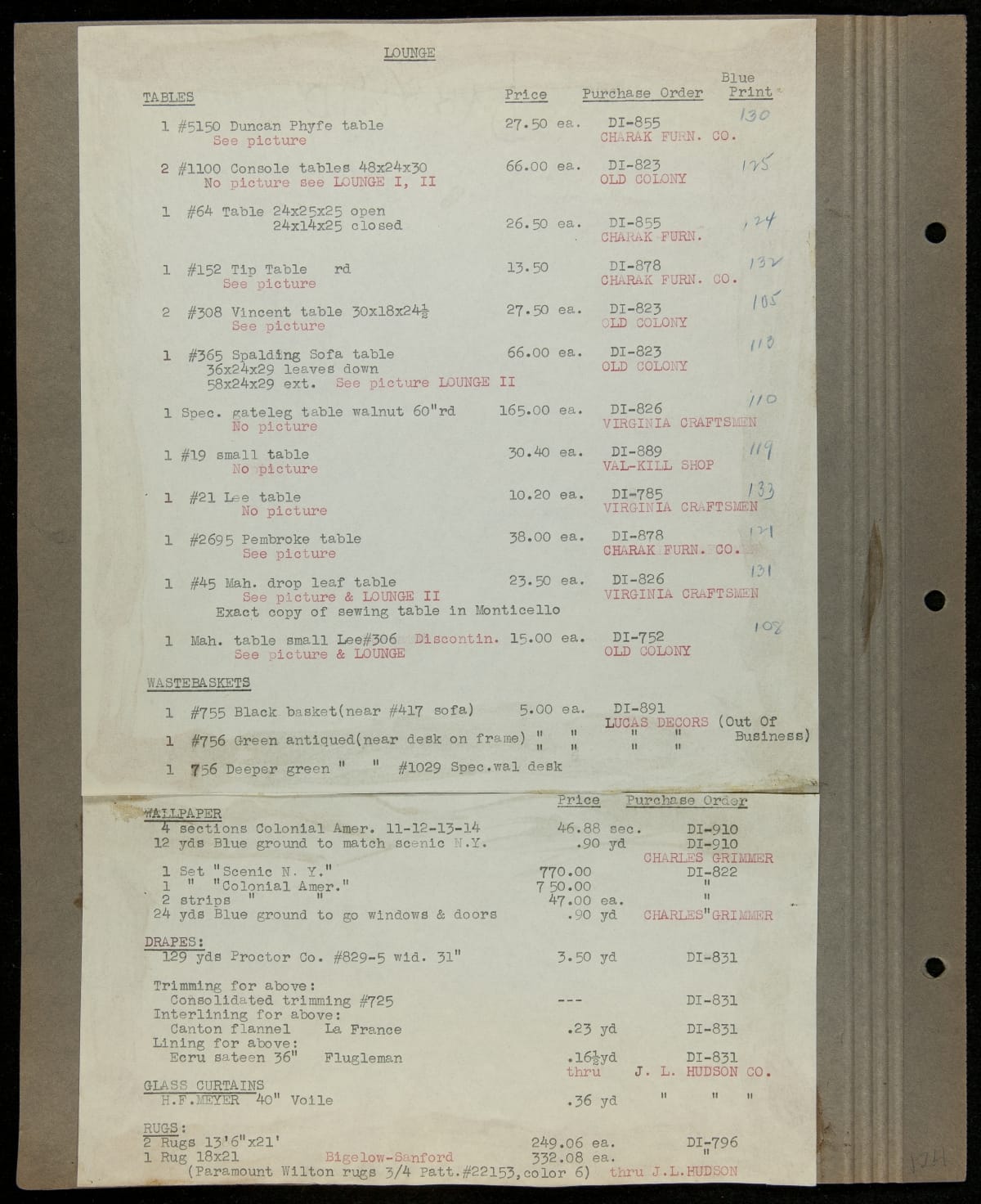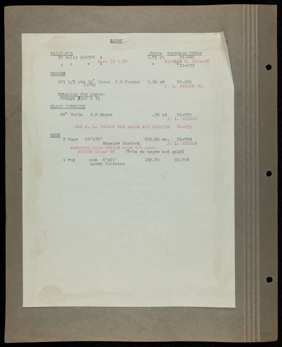 THF229244 / Scrapbook Documenting the Furnishing of Dearborn Inn, Dearborn, Michigan, 1931 / page131