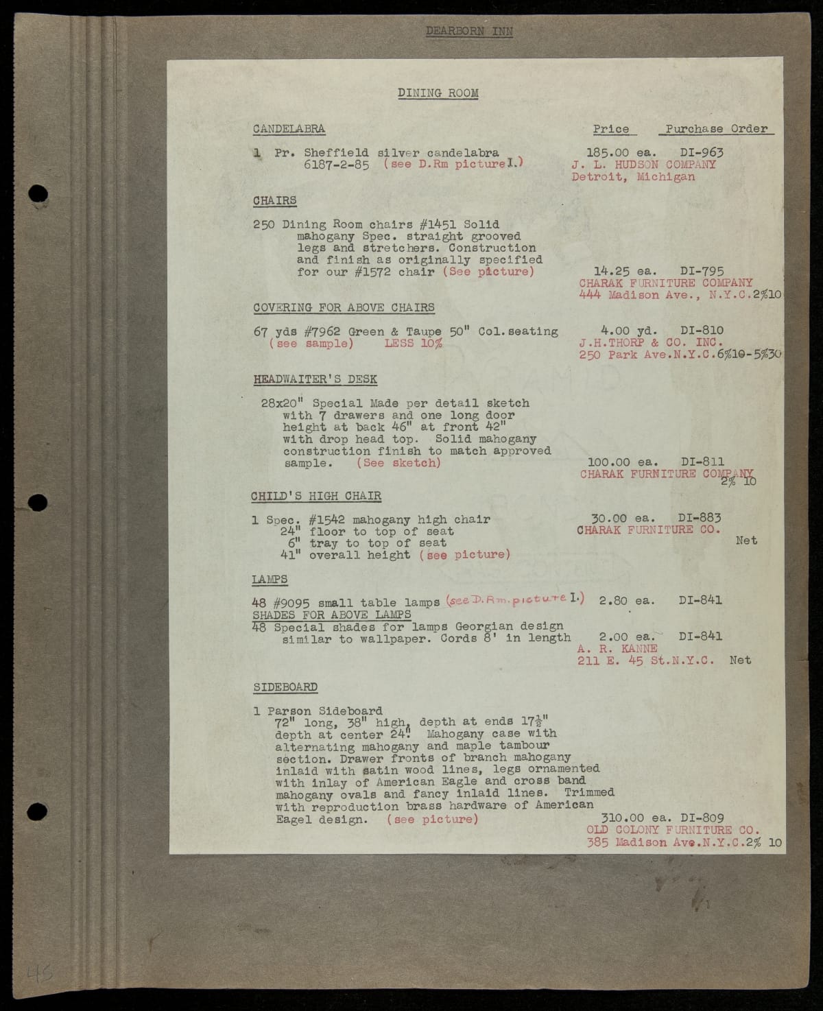 THF229220 / Scrapbook Documenting the Furnishing of Dearborn Inn, Dearborn, Michigan, 1931 / page105