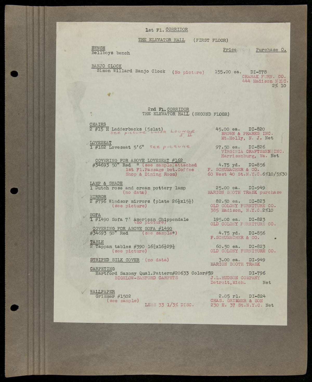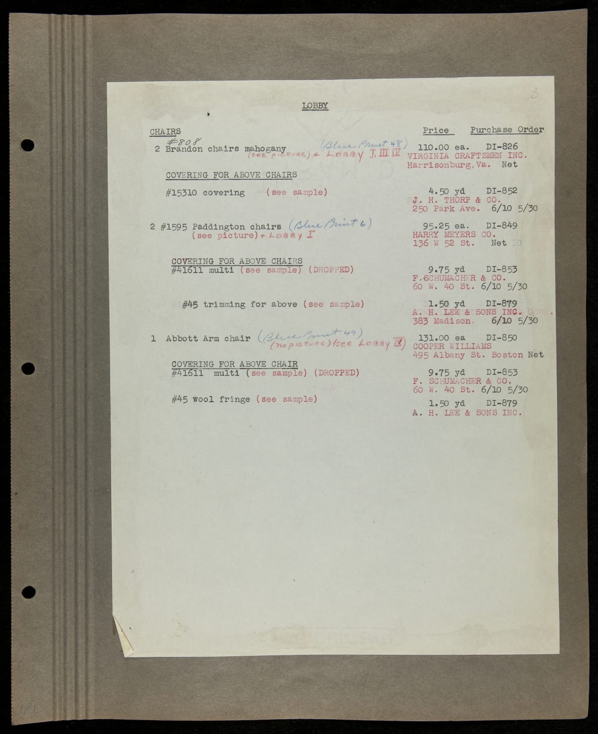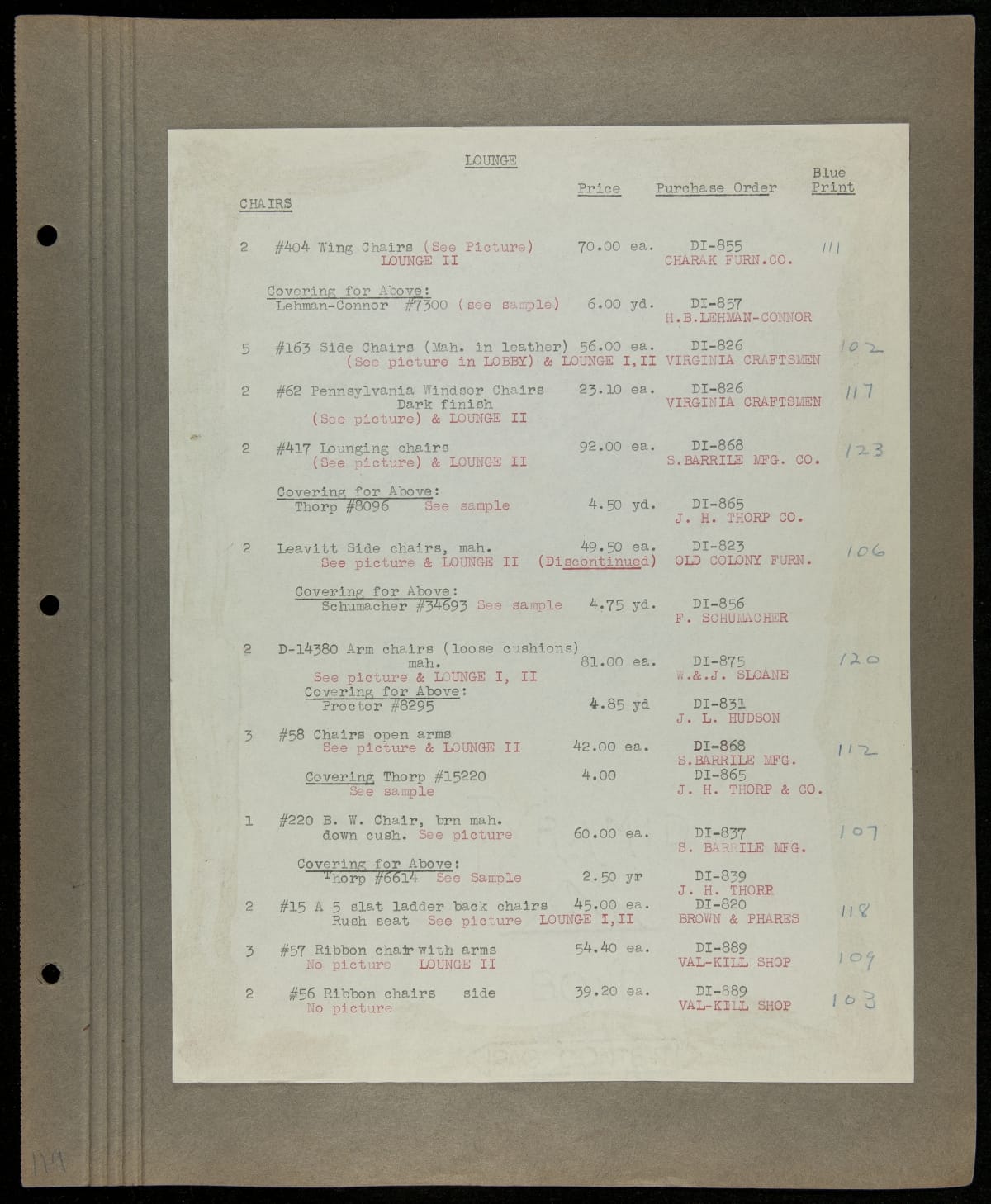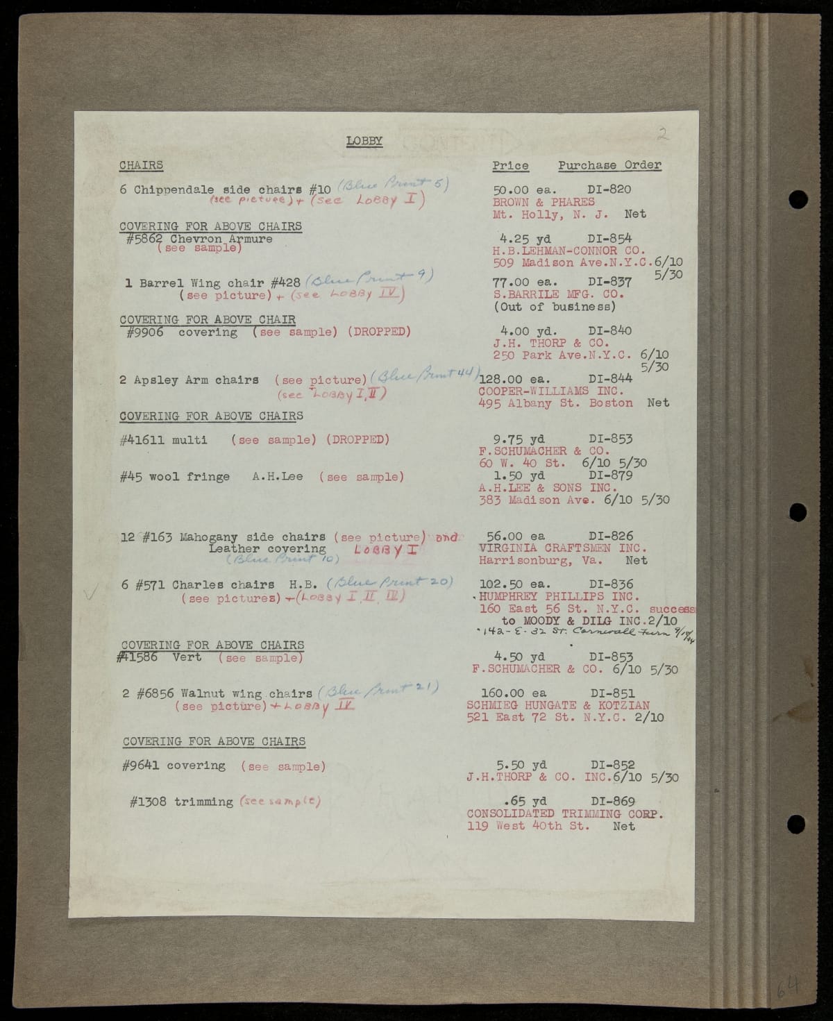 THF229227 / Scrapbook Documenting the Furnishing of Dearborn Inn, Dearborn, Michigan, 1931 / page112