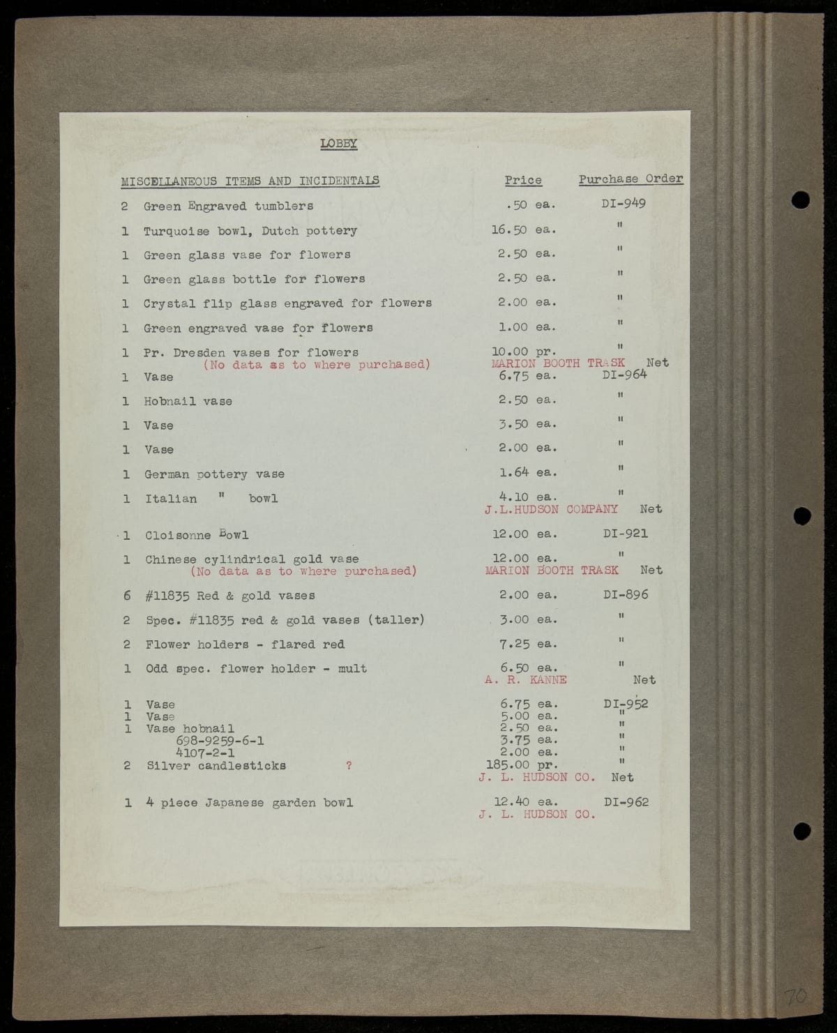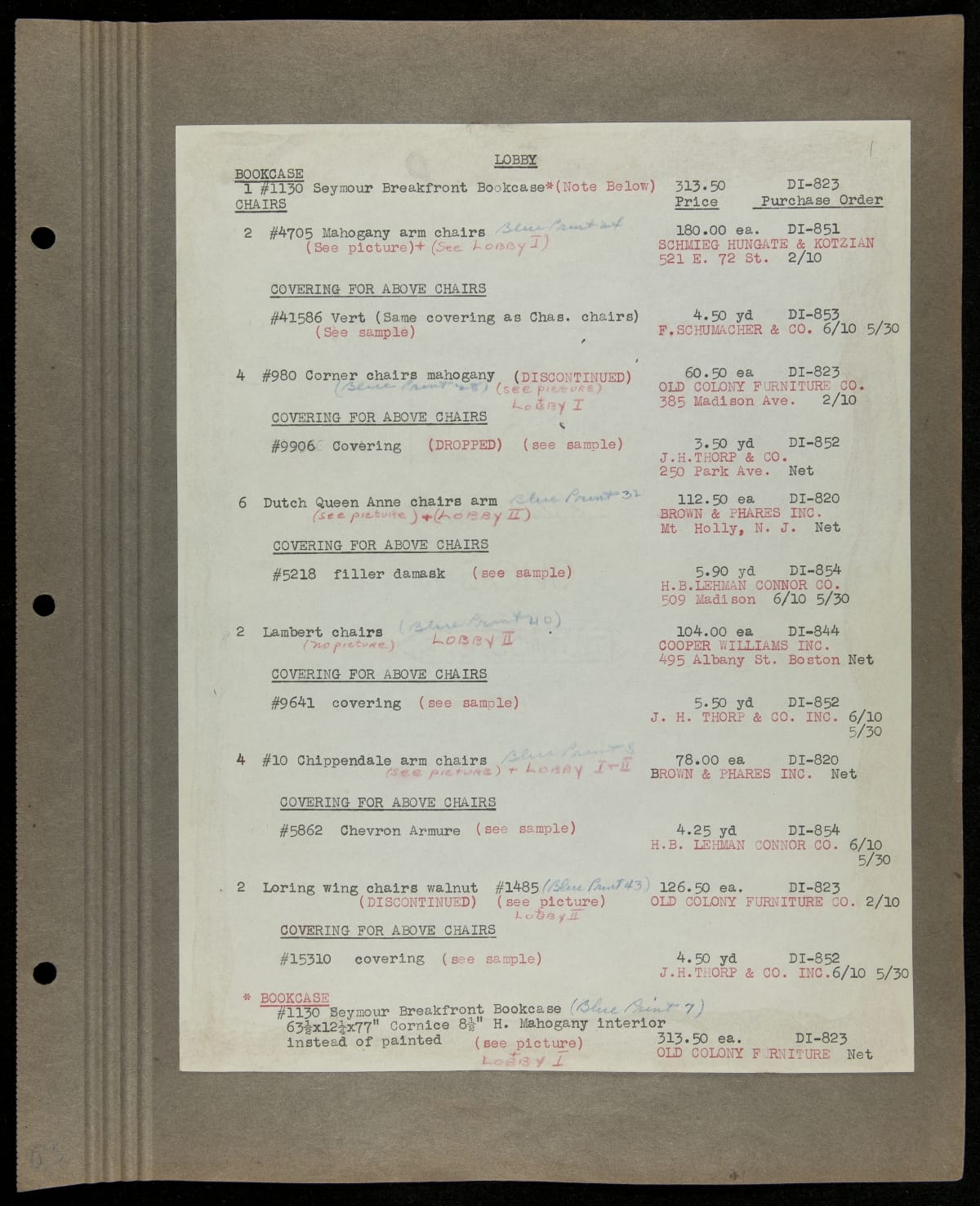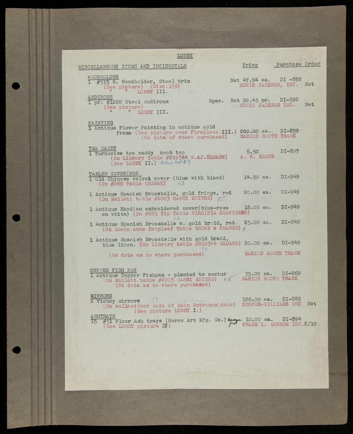 THF229224 / Scrapbook Documenting the Furnishing of Dearborn Inn, Dearborn, Michigan, 1931 / page109