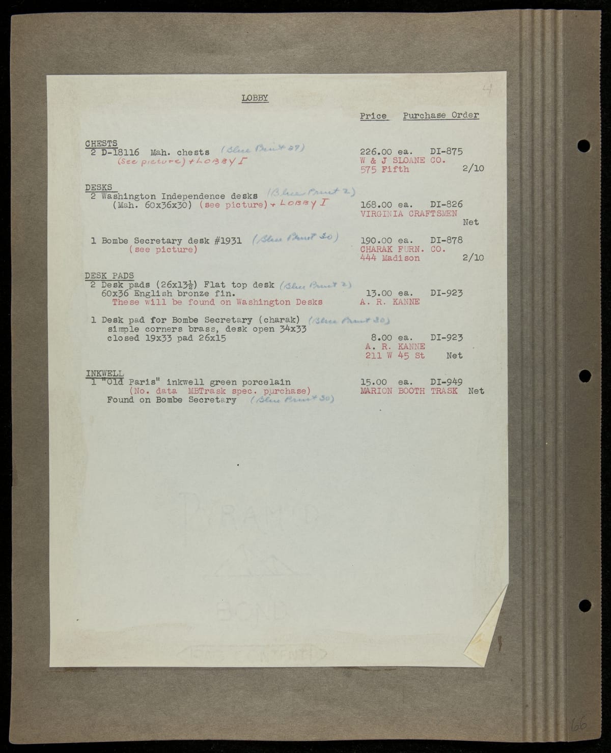 THF229290 / Scrapbook Documenting the Furnishing of Dearborn Inn, Dearborn, Michigan, 1931 / page167