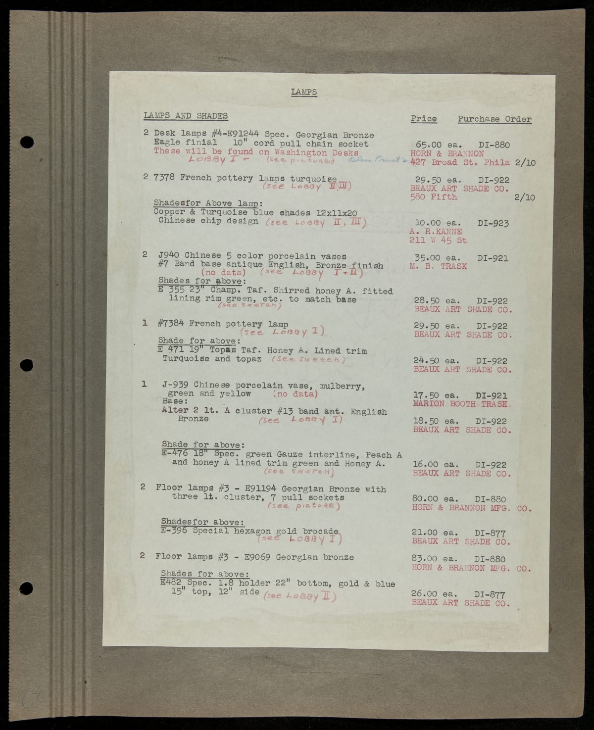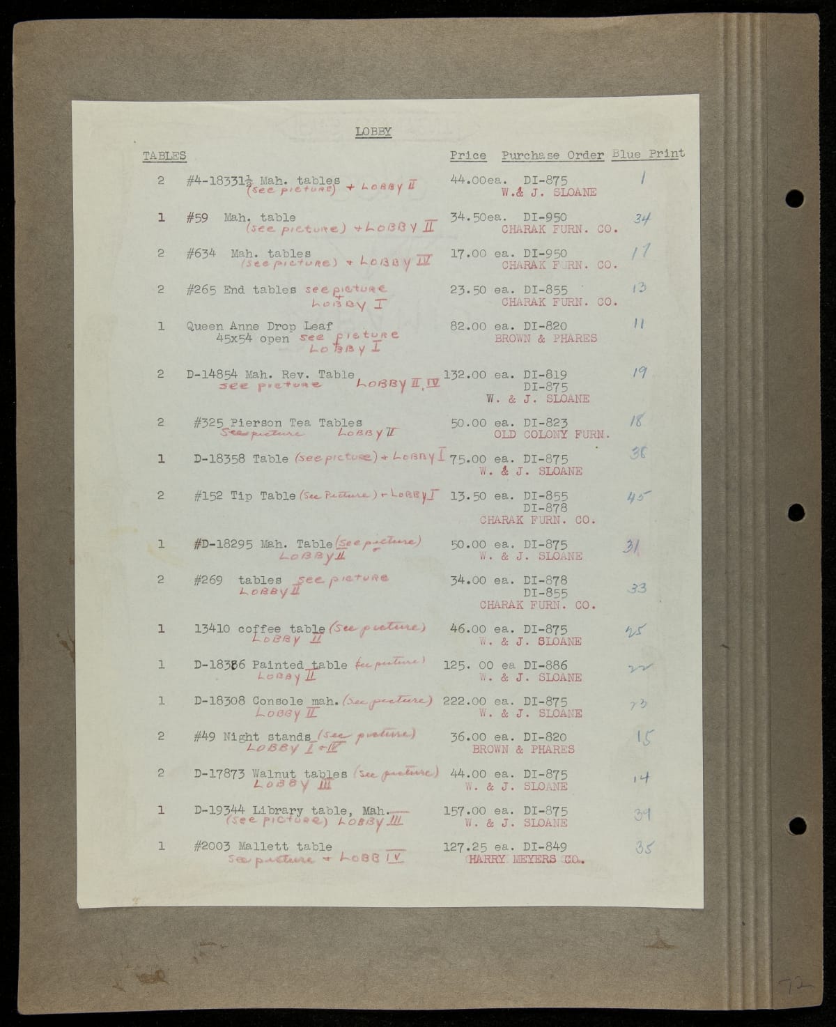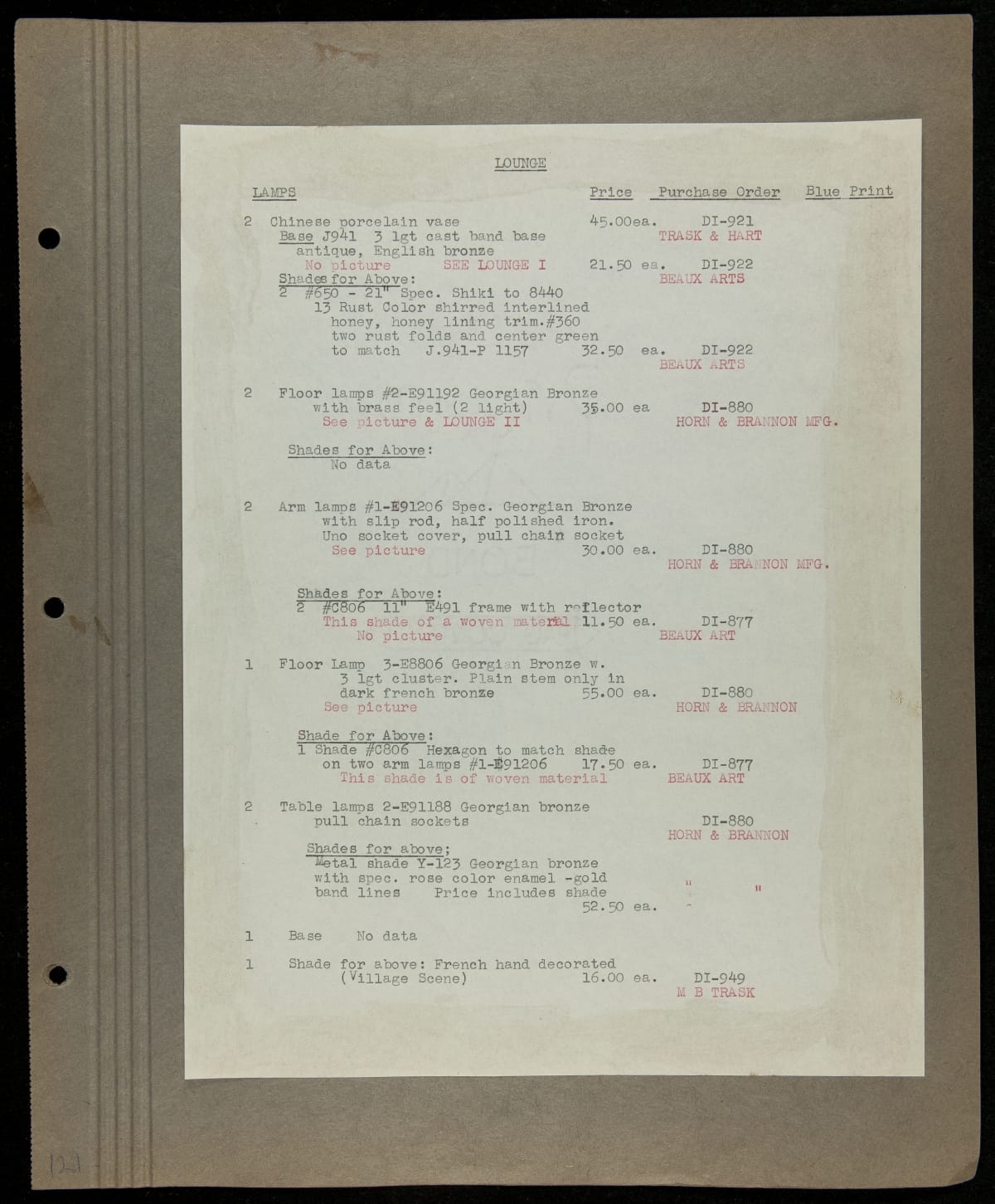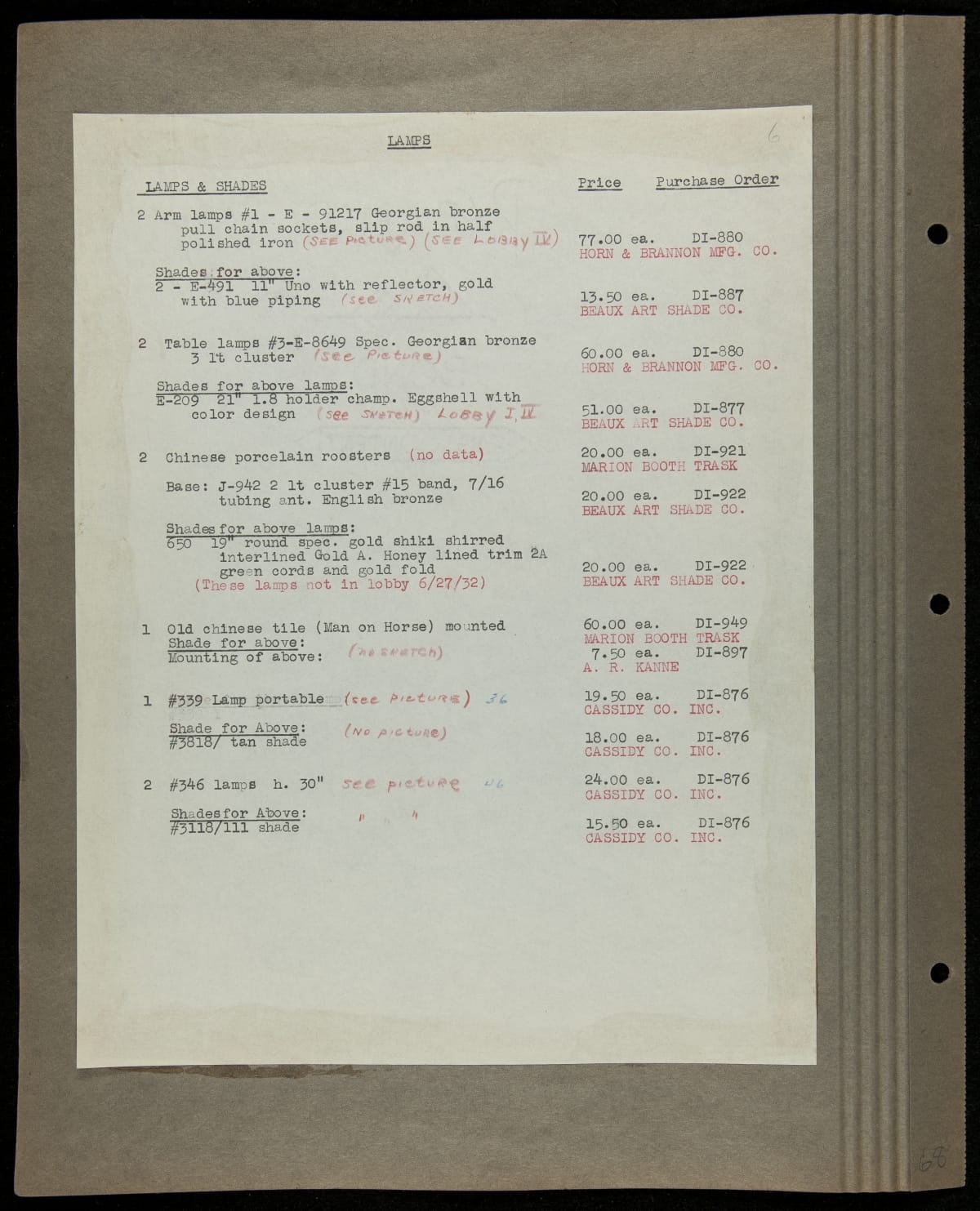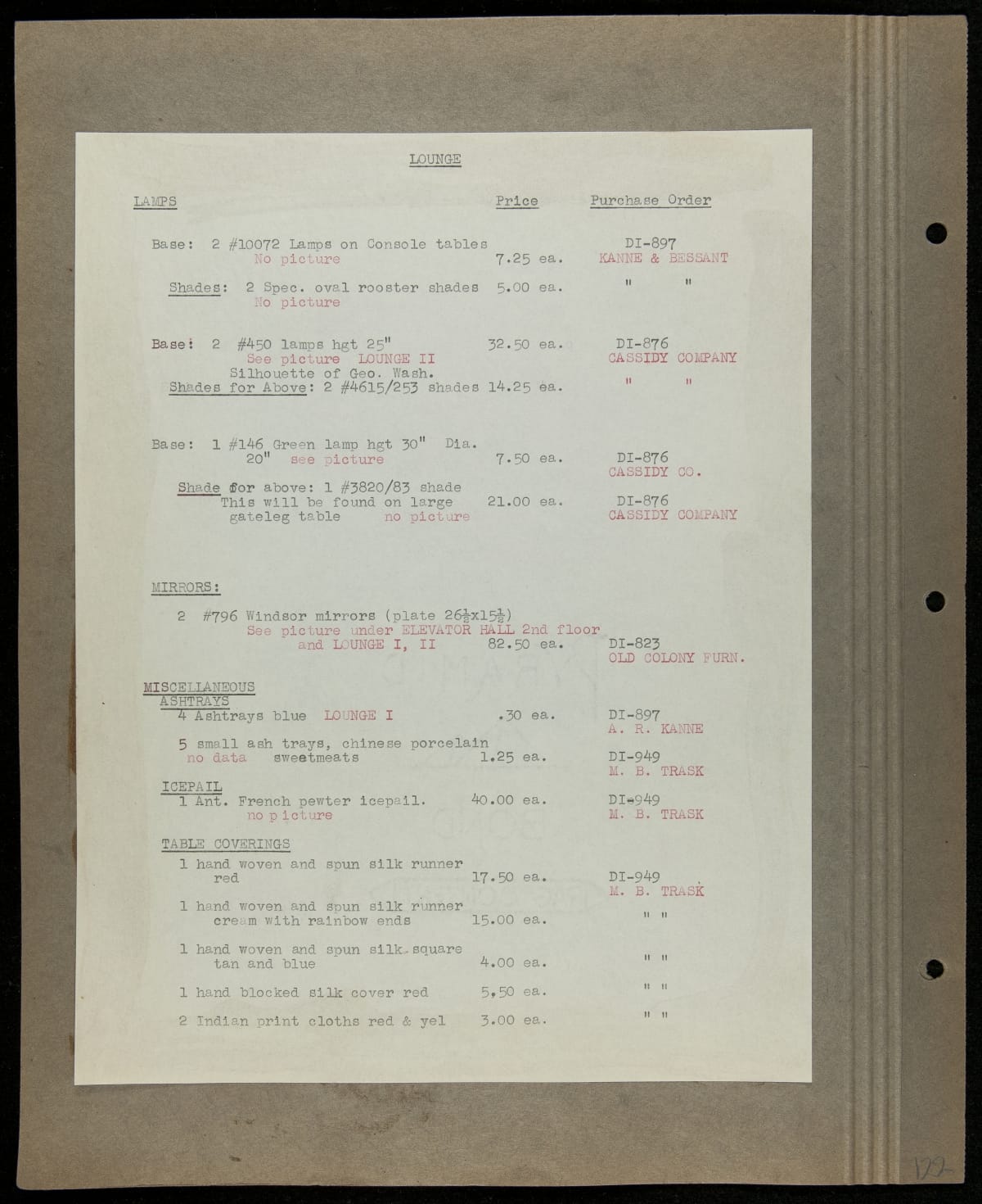 THF229219 / Scrapbook Documenting the Furnishing of Dearborn Inn, Dearborn, Michigan, 1931 / page104