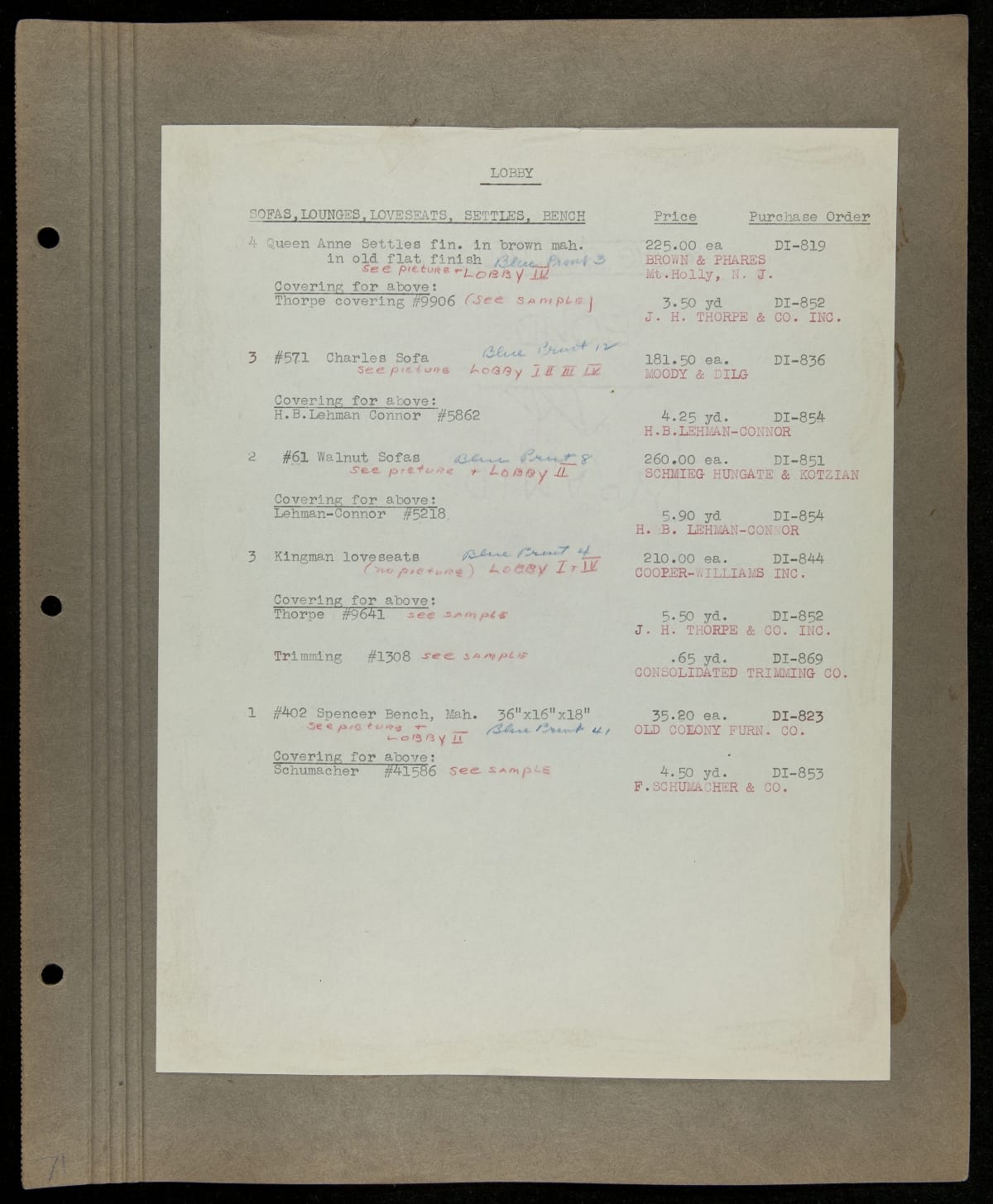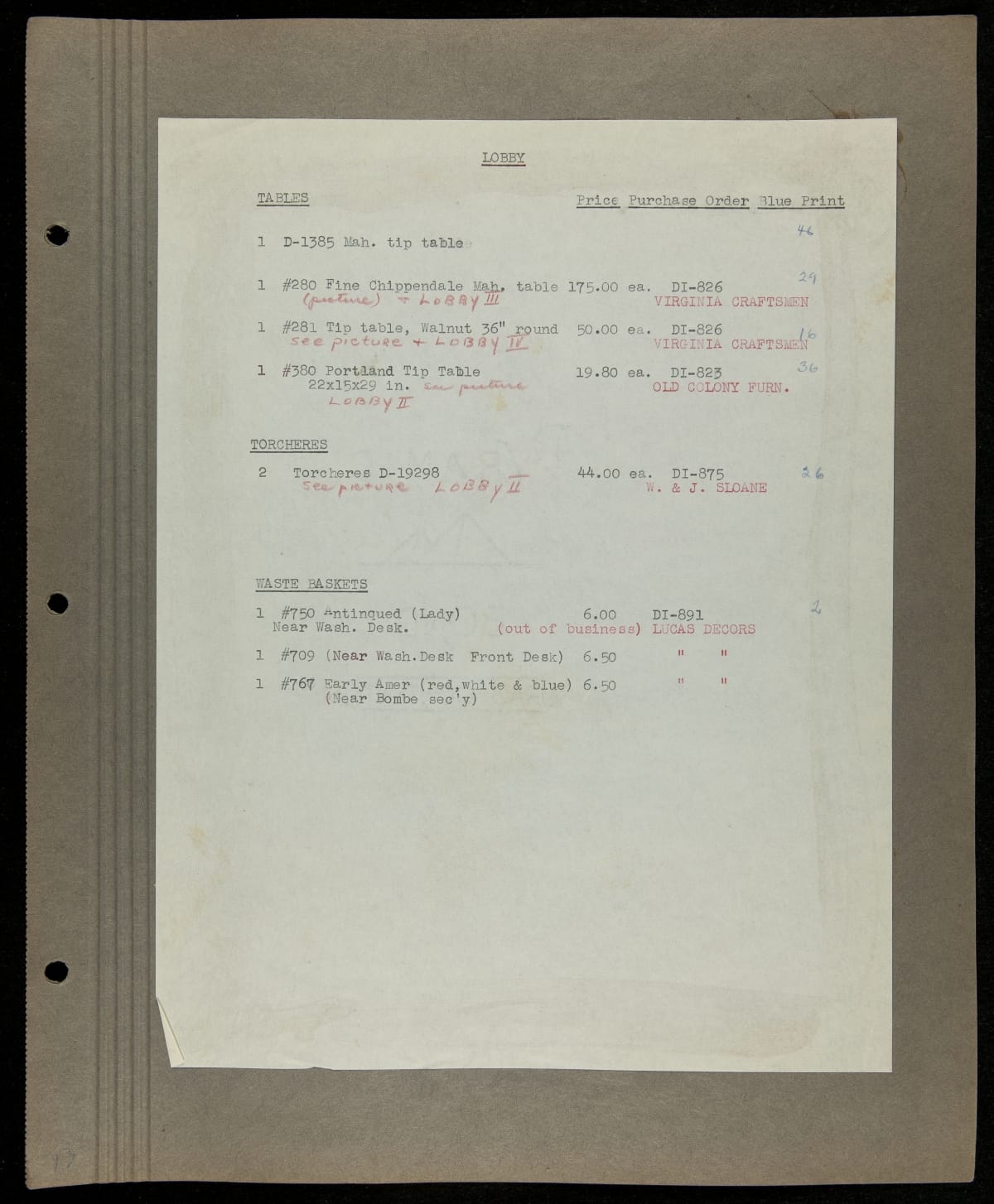 THF229218 / Scrapbook Documenting the Furnishing of Dearborn Inn, Dearborn, Michigan, 1931 / page103