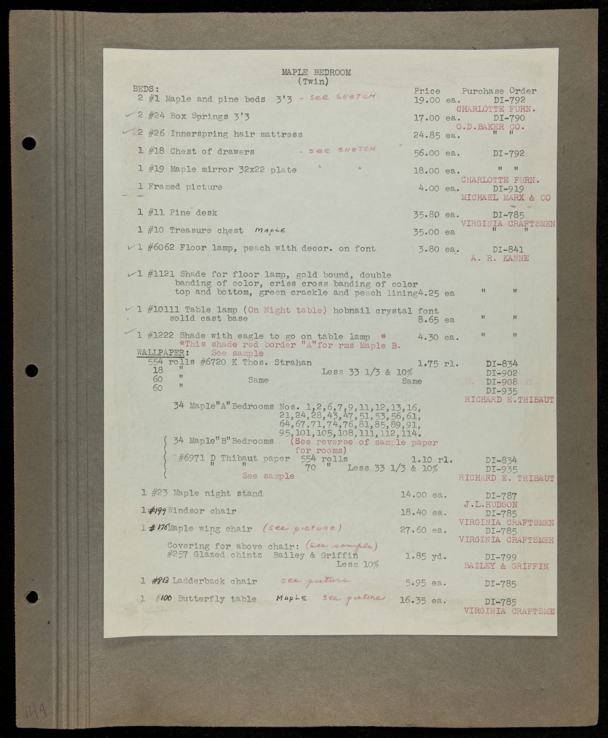 THF229258 / Scrapbook Documenting the Furnishing of Dearborn Inn, Dearborn, Michigan, 1931 / page149
