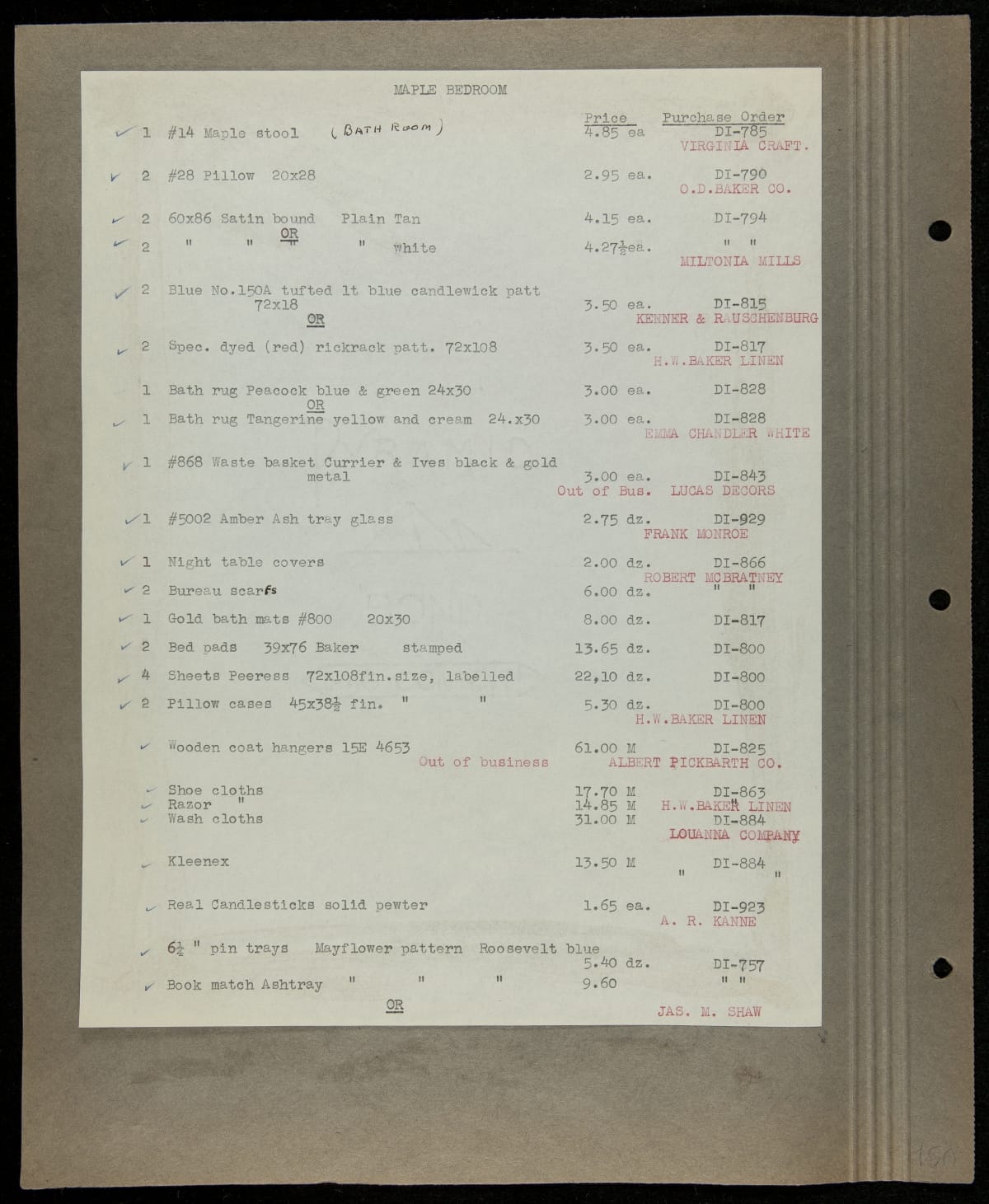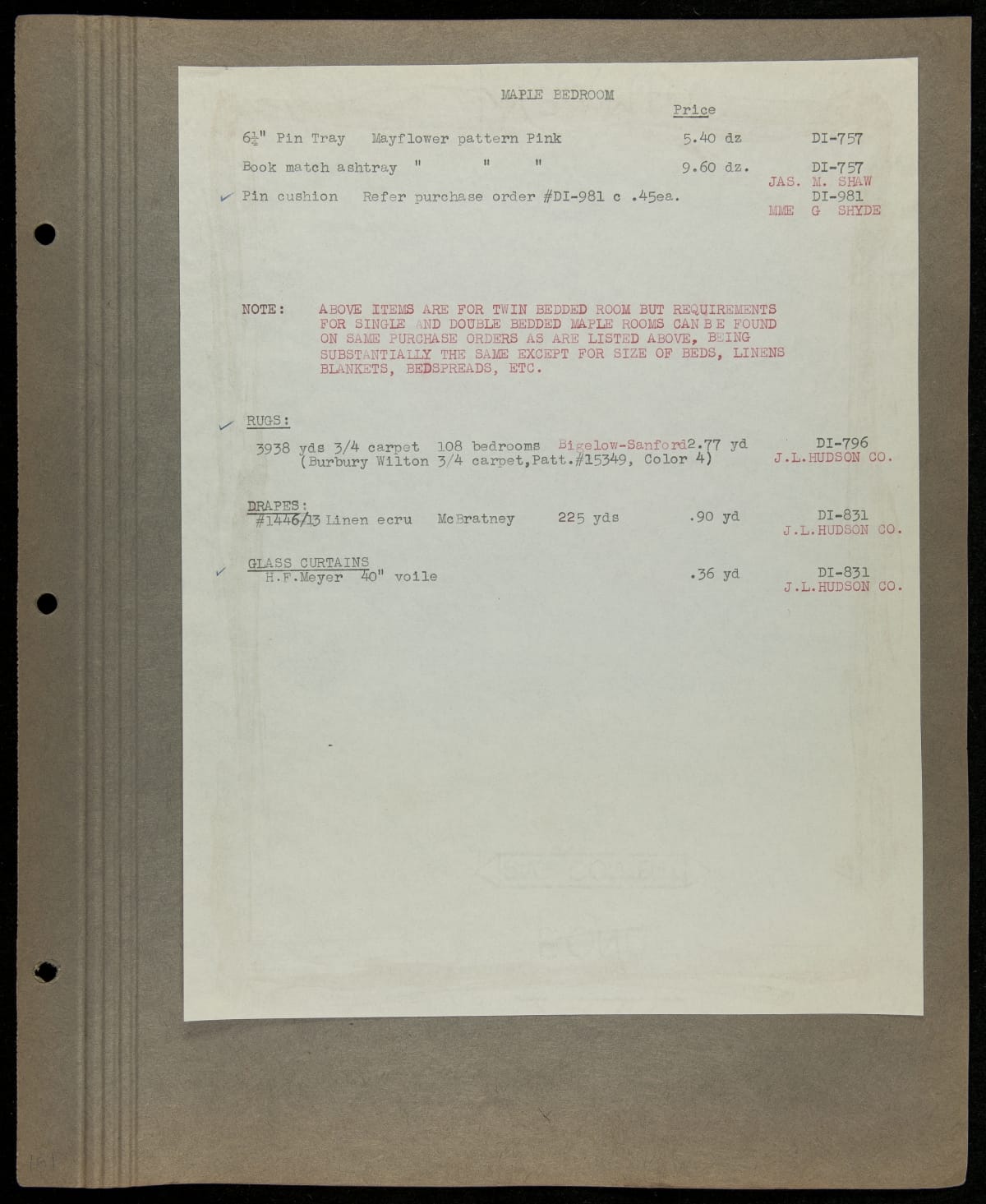 THF229263 / Scrapbook Documenting the Furnishing of Dearborn Inn, Dearborn, Michigan, 1931 / page156