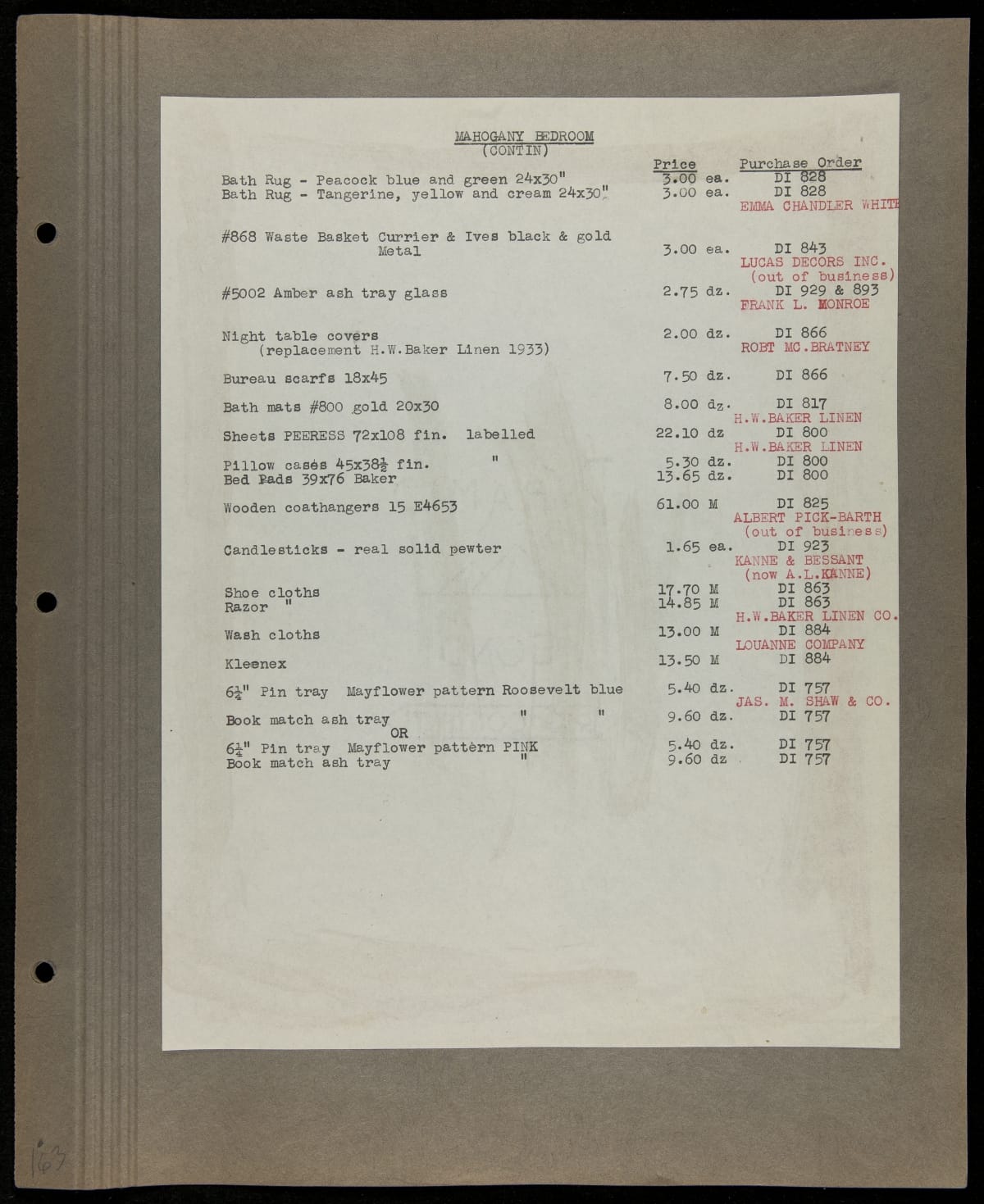 THF229286 / Scrapbook Documenting the Furnishing of Dearborn Inn, Dearborn, Michigan, 1931 / page163