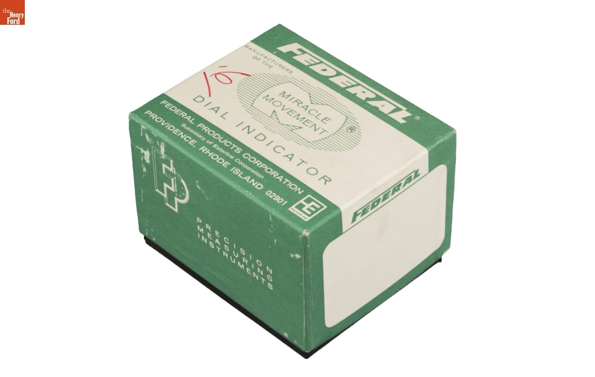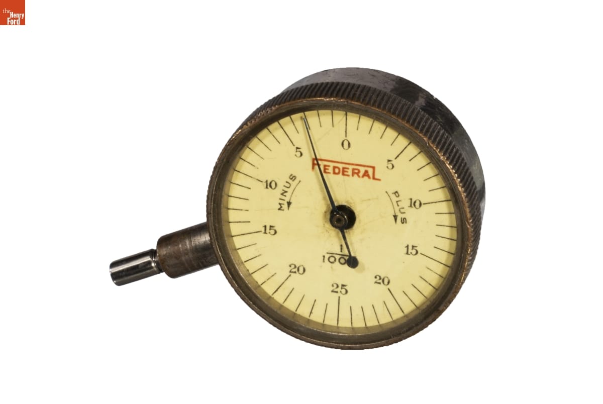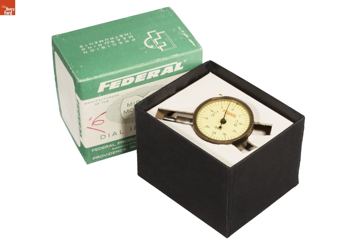 Dial indicators provide accurate measurements of parts used in a number of manufacturing processes. The large numbers on the indicator's face make small, imperceptible dimensions visible. Operators compare these measurements against a standard and make corrections if any deviation is found. The Federal Products Corporation made a variety of precise measuring devices in the 20th century.